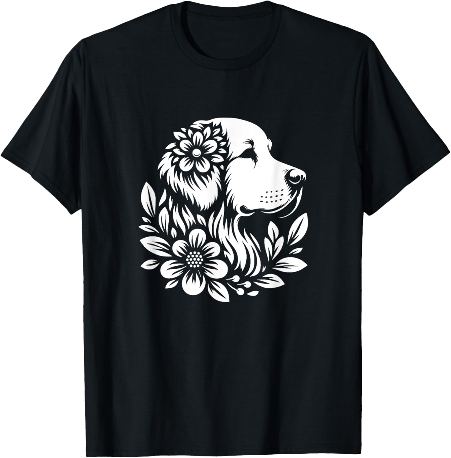 Floral Golden Retriever Face Dog Flower Graphic Design T-Shirt
