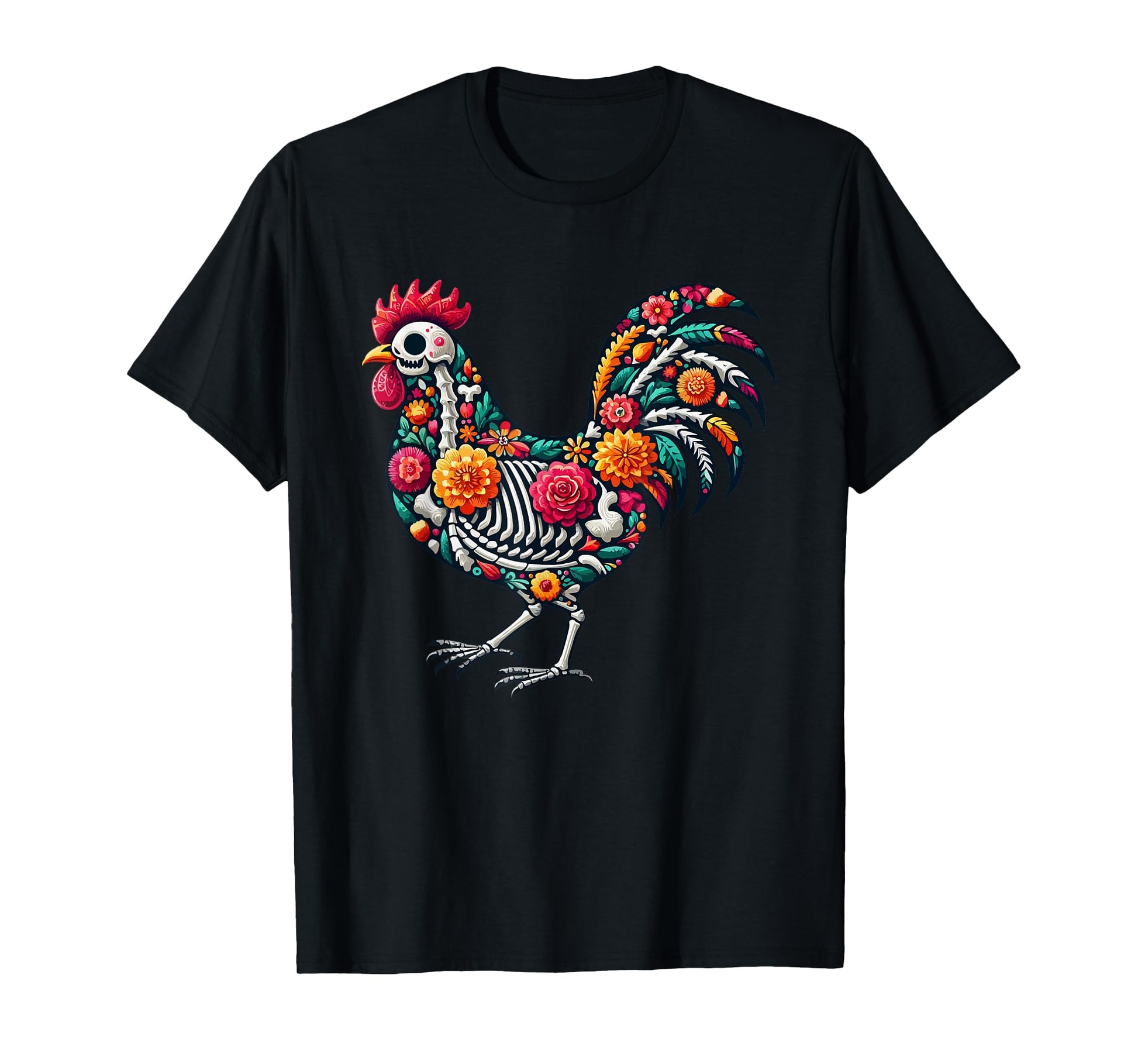 Floral Skeleton Chicken Mexican Dia De Los Muertos Halloween T-Shirt