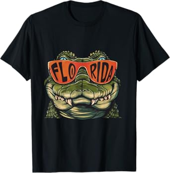 Florida Alligator Wearing Retro Style Sunglasses Animal Art T-Shirt