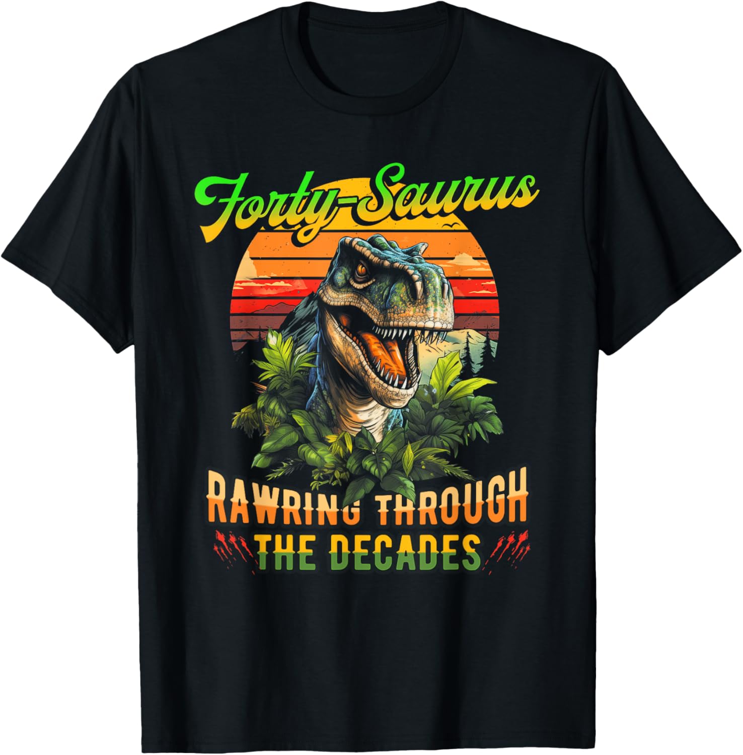 Forty-Saurus Rawring Through Decades T-Rex 40th Birthday T-Shirt