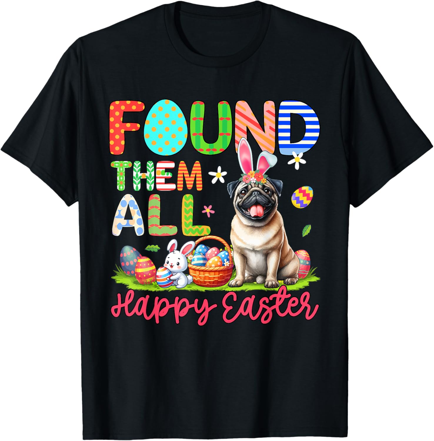 Found Them All Happy Easter Bunny Pug Eggs Basket T-Shirt