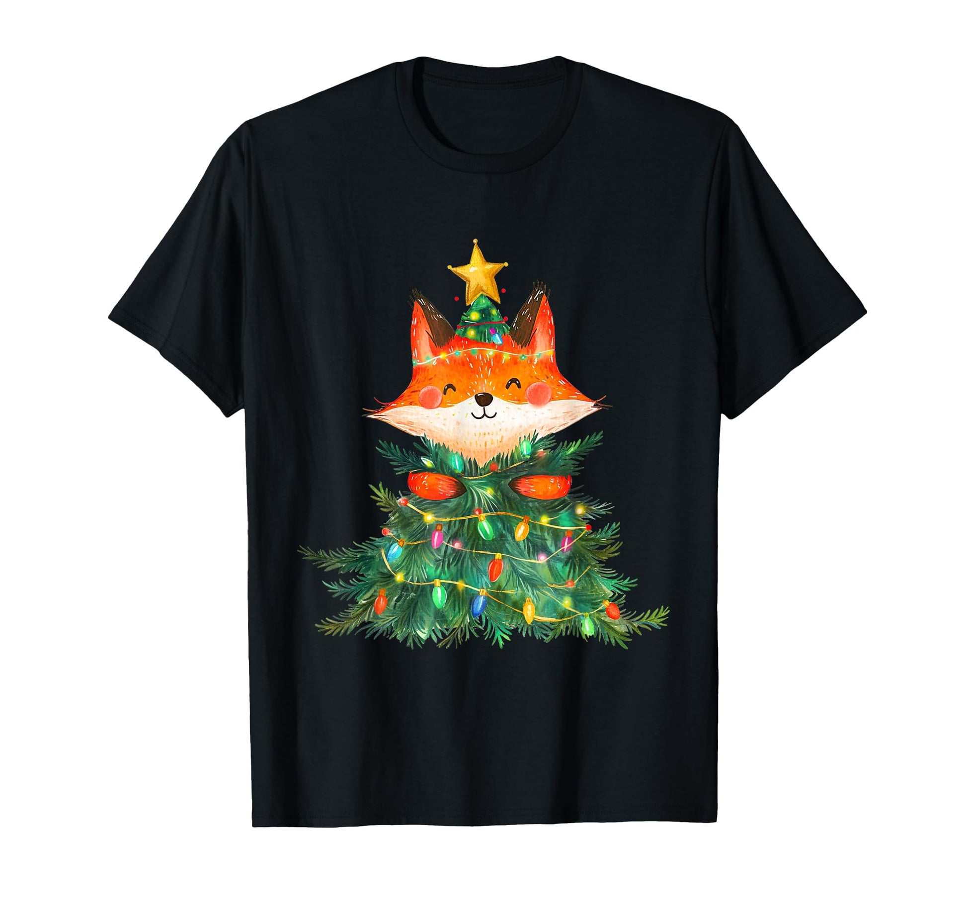 Fox Christmas Tree Pajamas Girls Boys Xmas Lights T-Shirt
