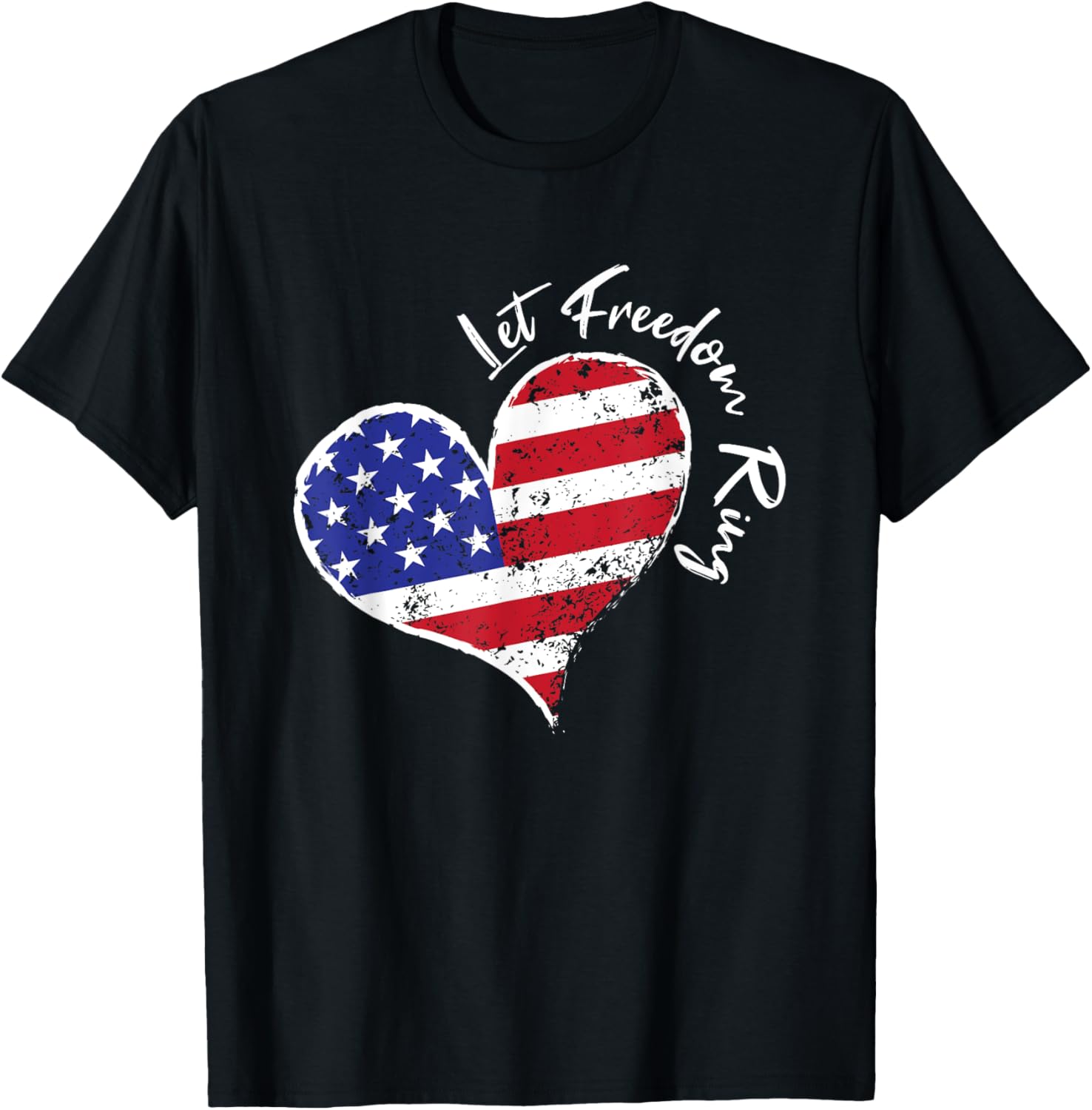 Let Freedom Ring Heart 4th of July Patriotic USA Flag Stars T-Shirt