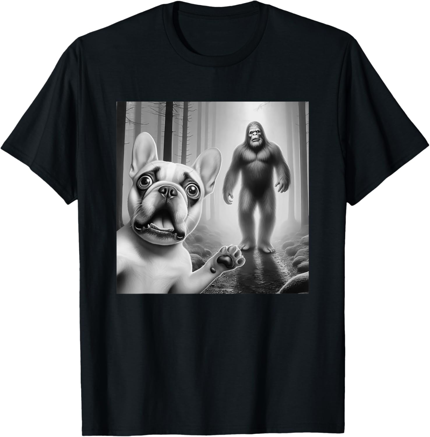 Funny French bulldog Selfie with bigfoot sasquatch T-Shirt