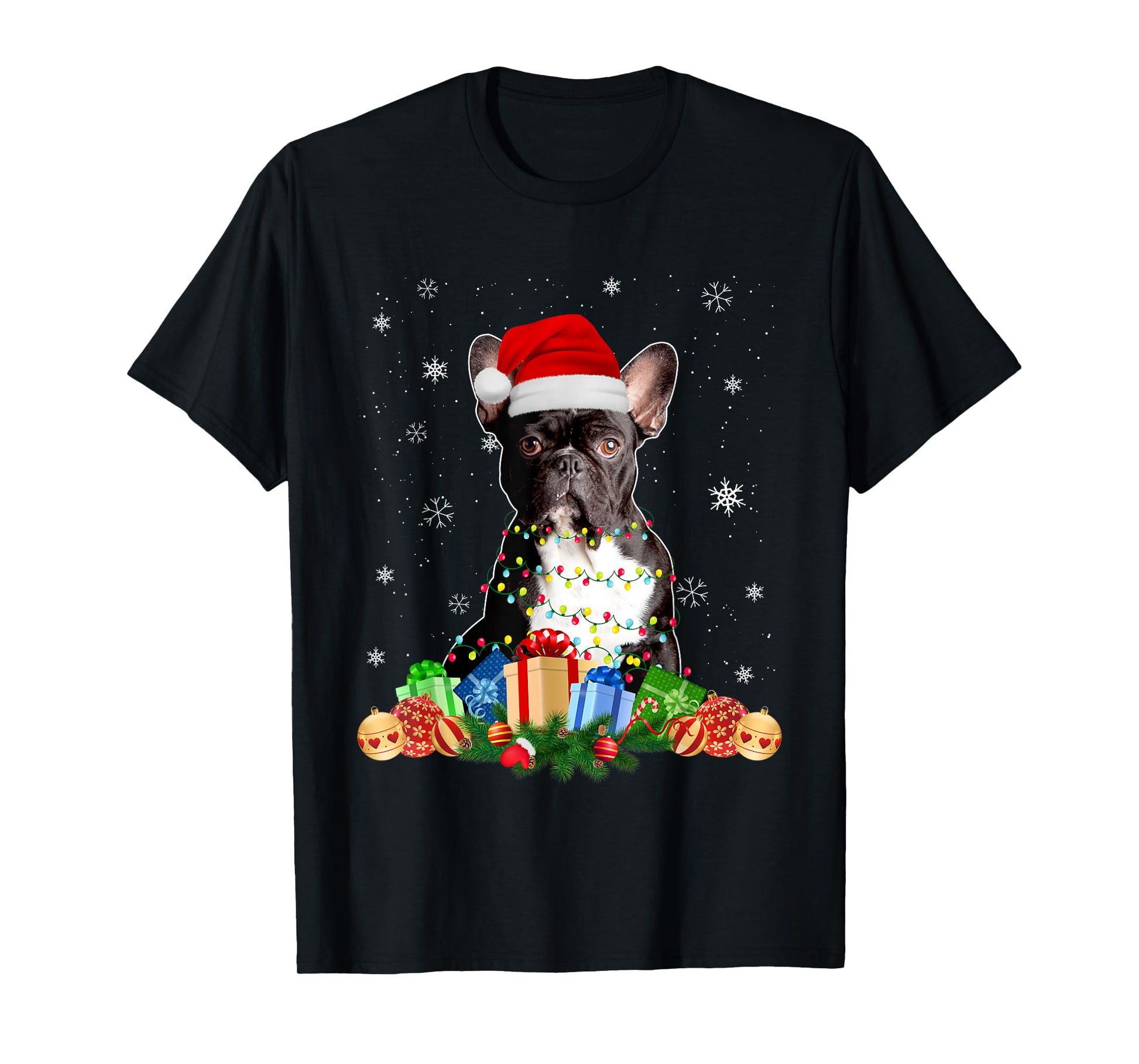 French Bulldog Dog Christmas Lights Santa Puppy Dog Lover Men Women Kids T-Shirt
