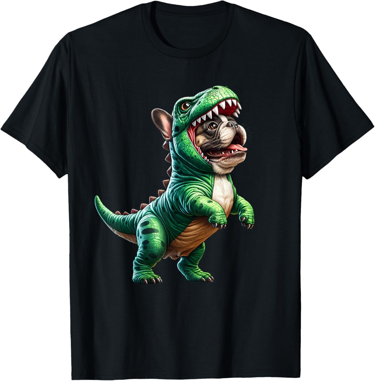 French Bulldog Wearing T-Rex Dinosaur Outfit Funny Dog Lover T-Shirt