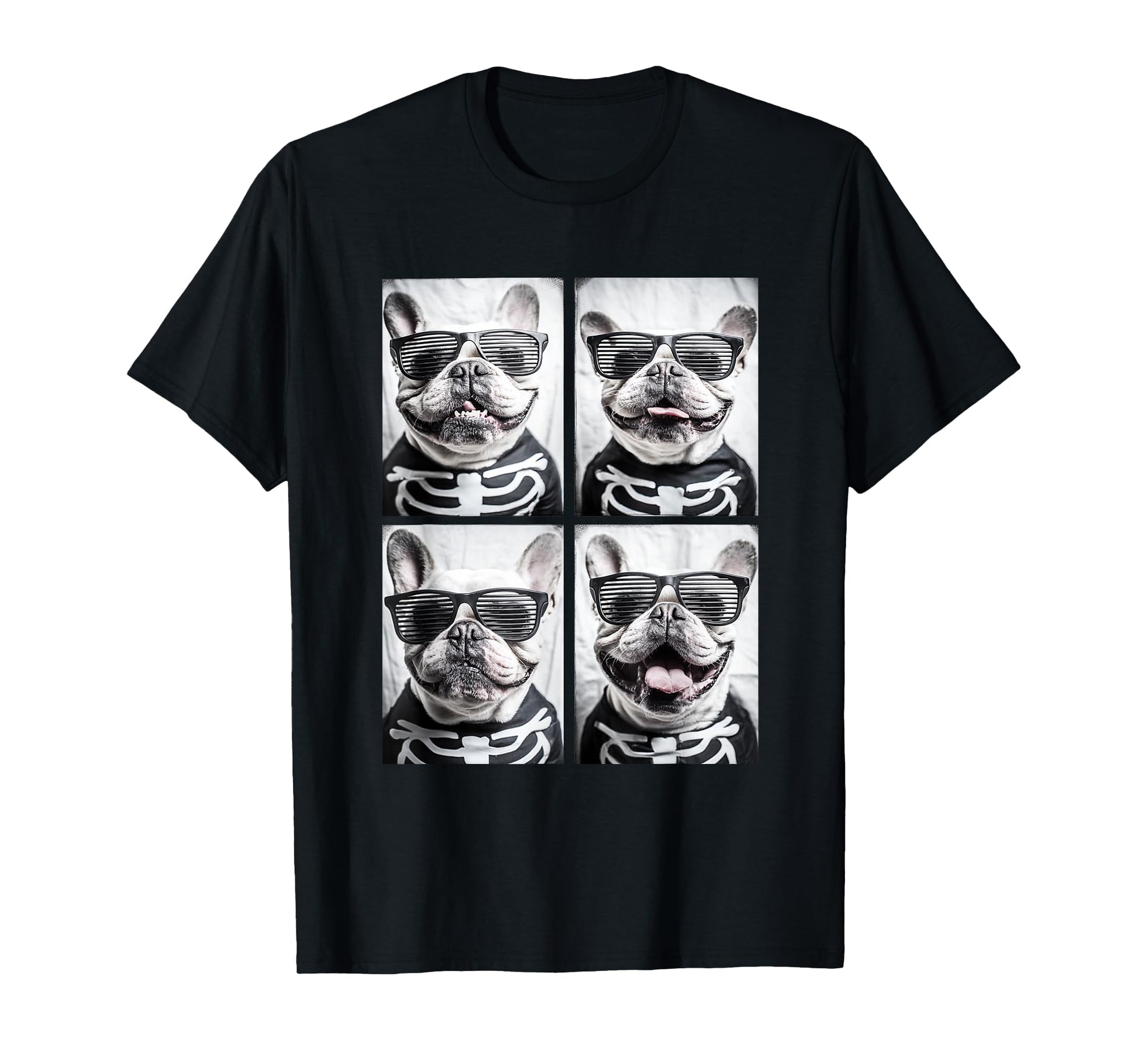 French Bulldogs with Sunglasses Halloween Skeleton Costume T-Shirt