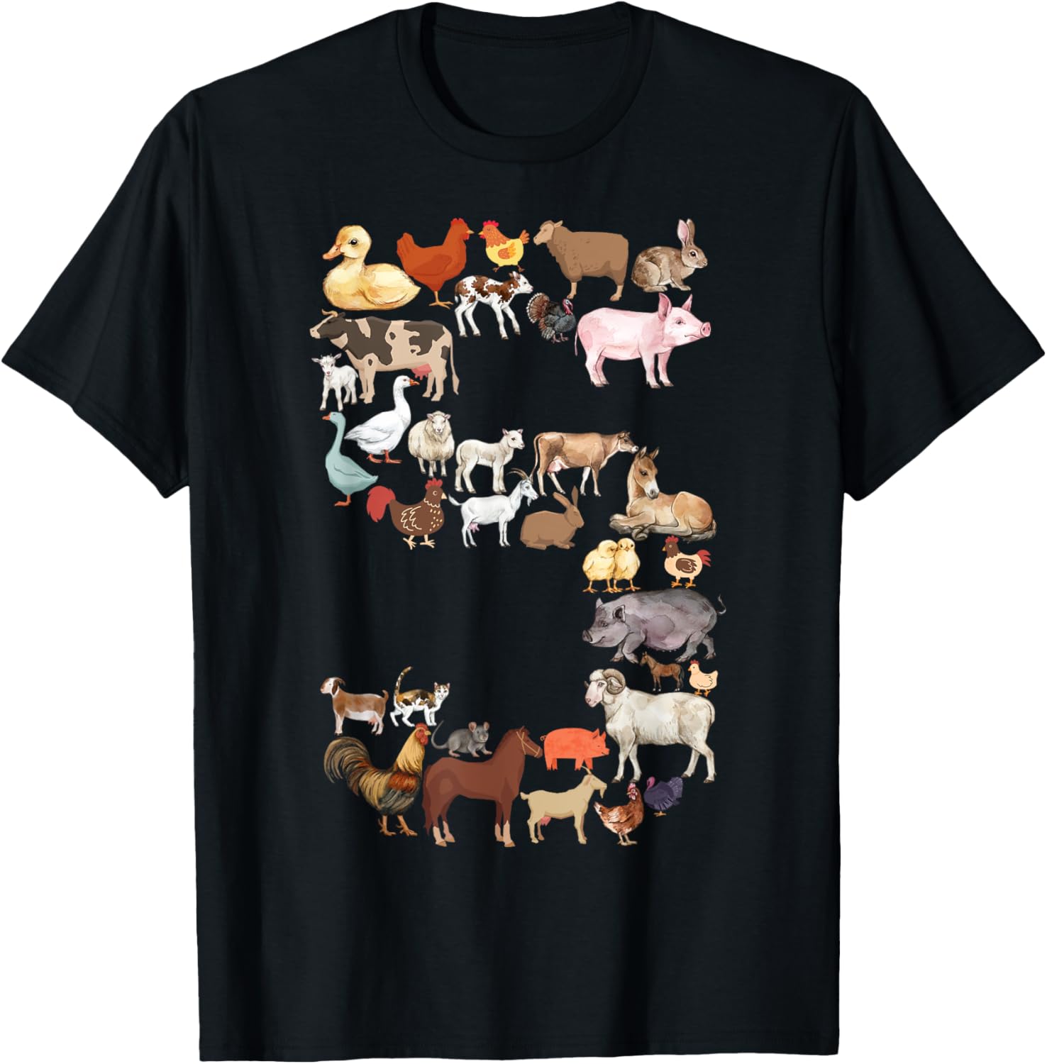 Fun 5th Birthday Farm Animals Themes Boys Kids 5 Year Old T-Shirt