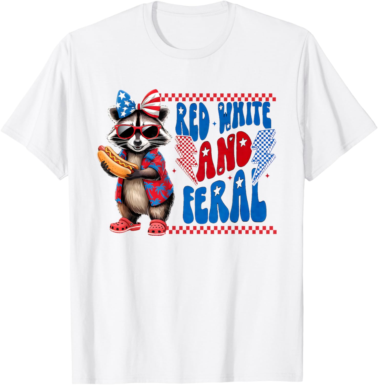 Funny Red White And Feral 4th Of July Raccoon Hot Dog Cute T-Shirt