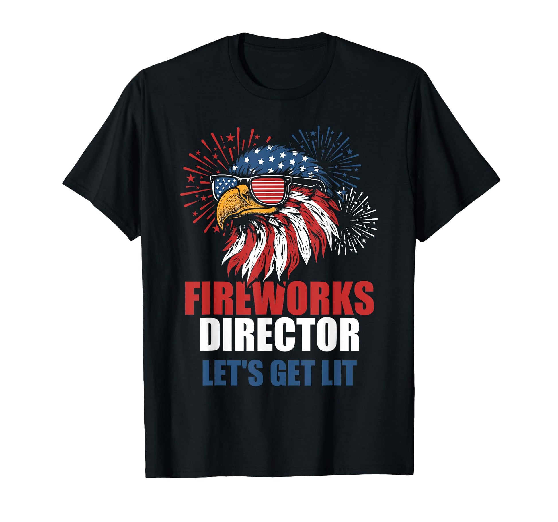 Funny 4th of July Fireworks Lets Get Lit Eagle American Flag T-Shirt