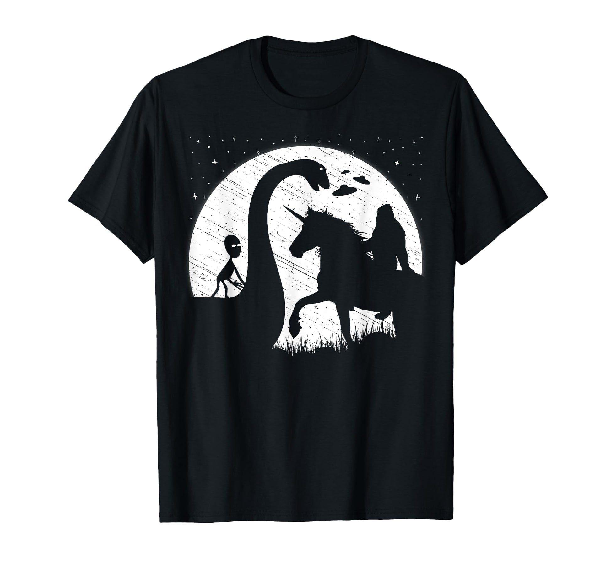 Funny Alien Riding Loch Ness Monster Nessie Bigfoot Unicorn T-Shirt