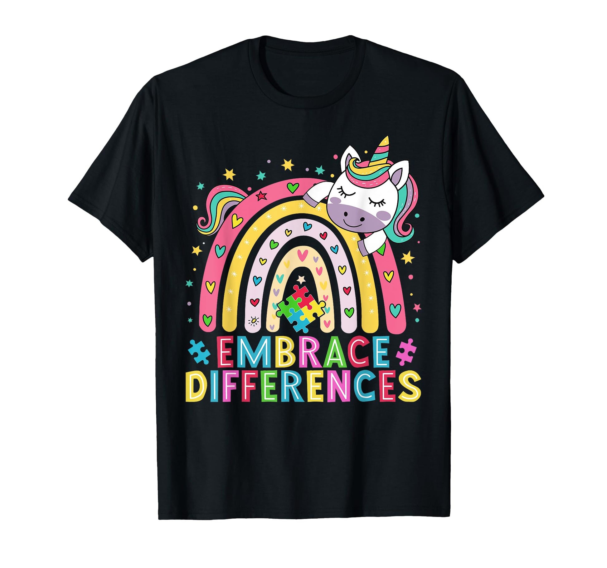 Funny Autism Awareness Cute Rainbow Unicorn Women Girls T-Shirt