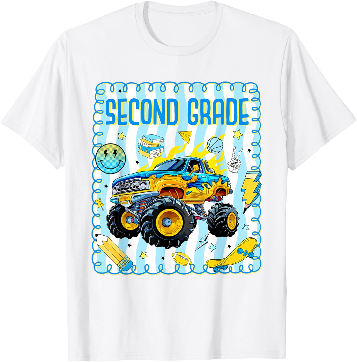 Funny Back to School Monster Truck Second Grade for Boy Kids T-Shirt