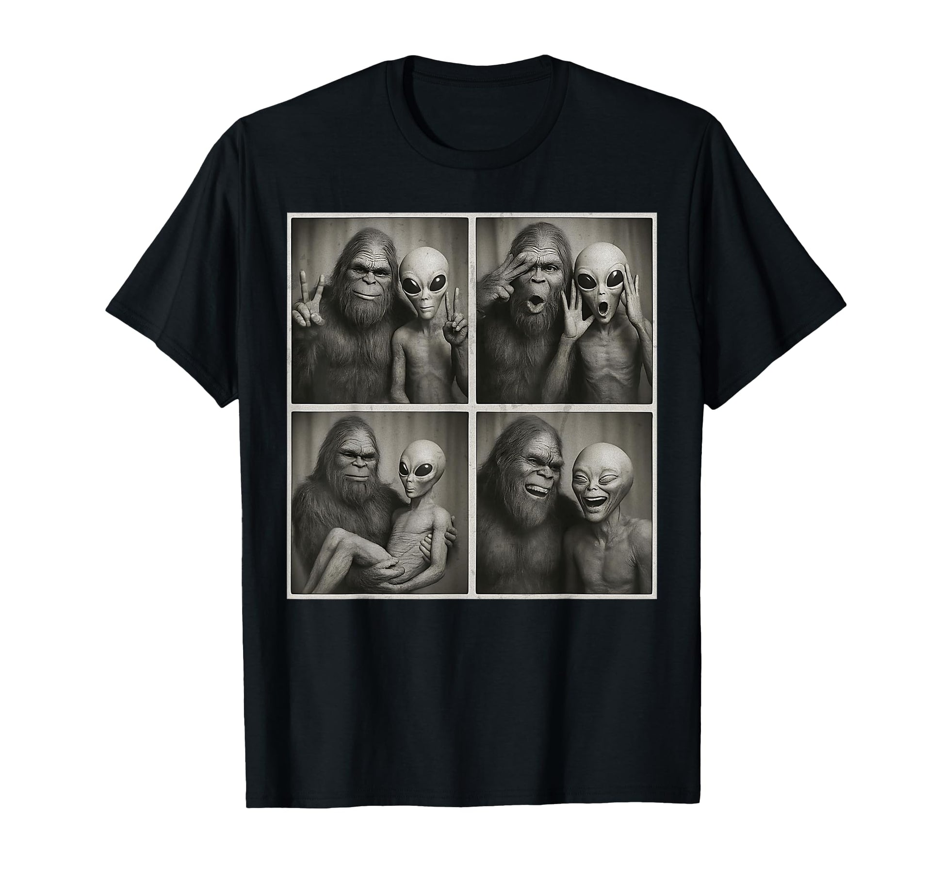 Funny Bigfoot and Alien Photobooth Vintage Sasquatch Cryptid T-Shirt