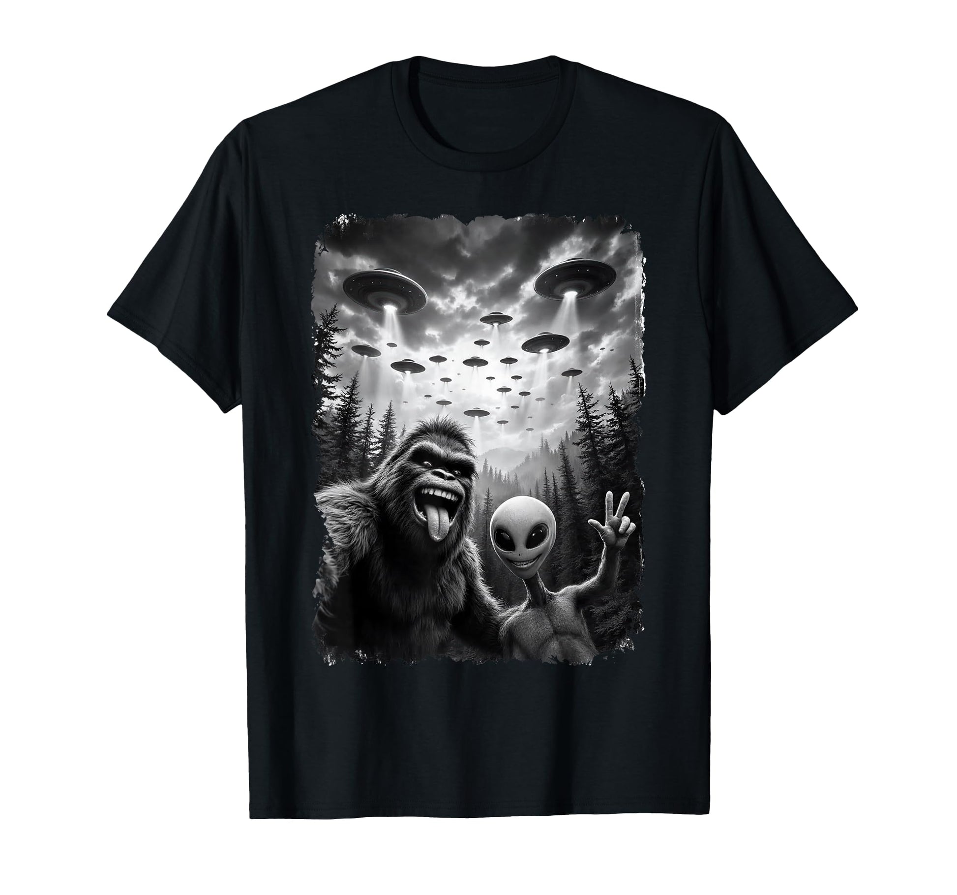 Funny Bigfoot and Alien Sasquatch Bruh Selfie T-Shirt