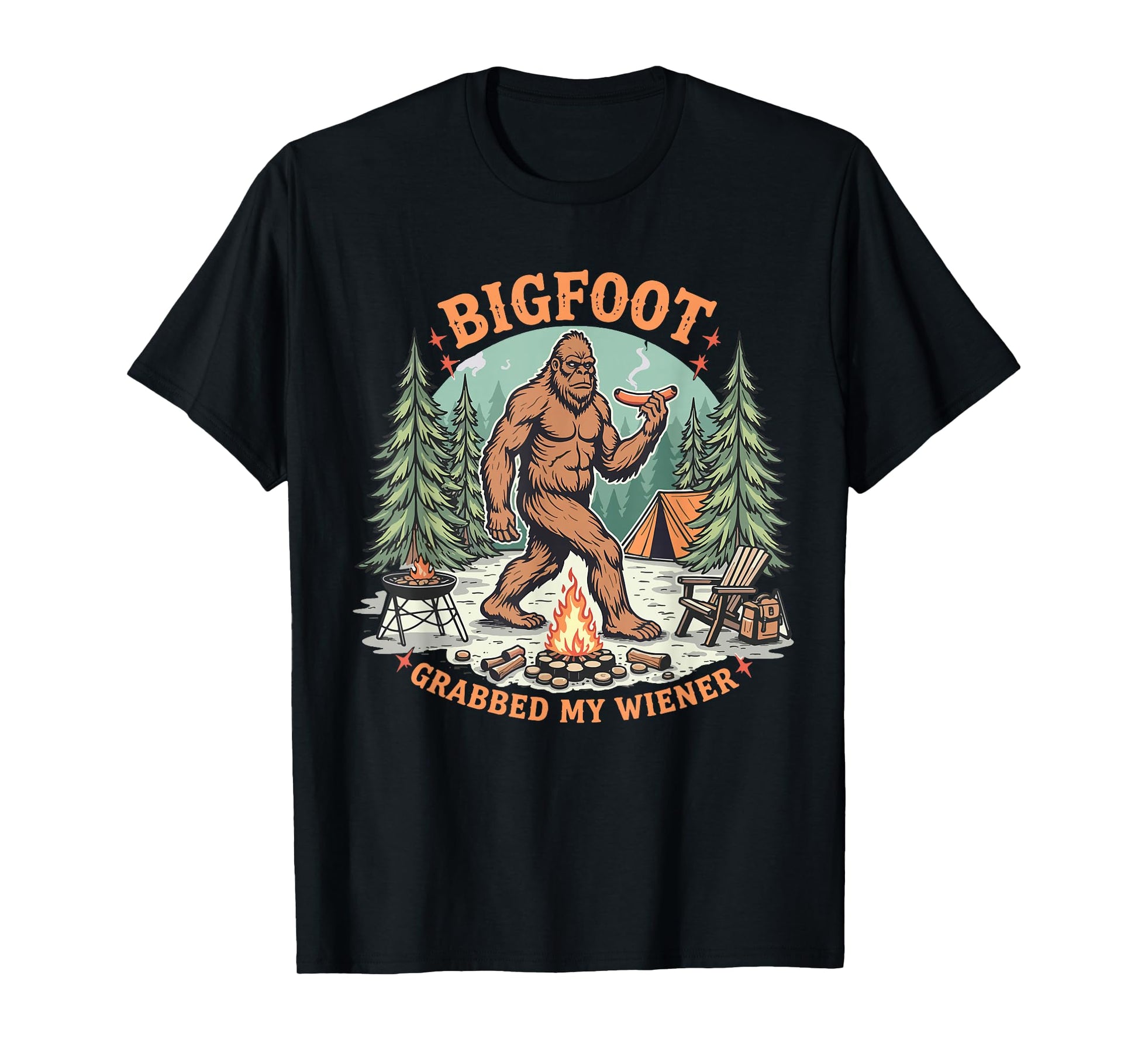 Funny Bigfoot Meme Sasquatch Men Bigfoot Grabbed My Wiener T-Shirt