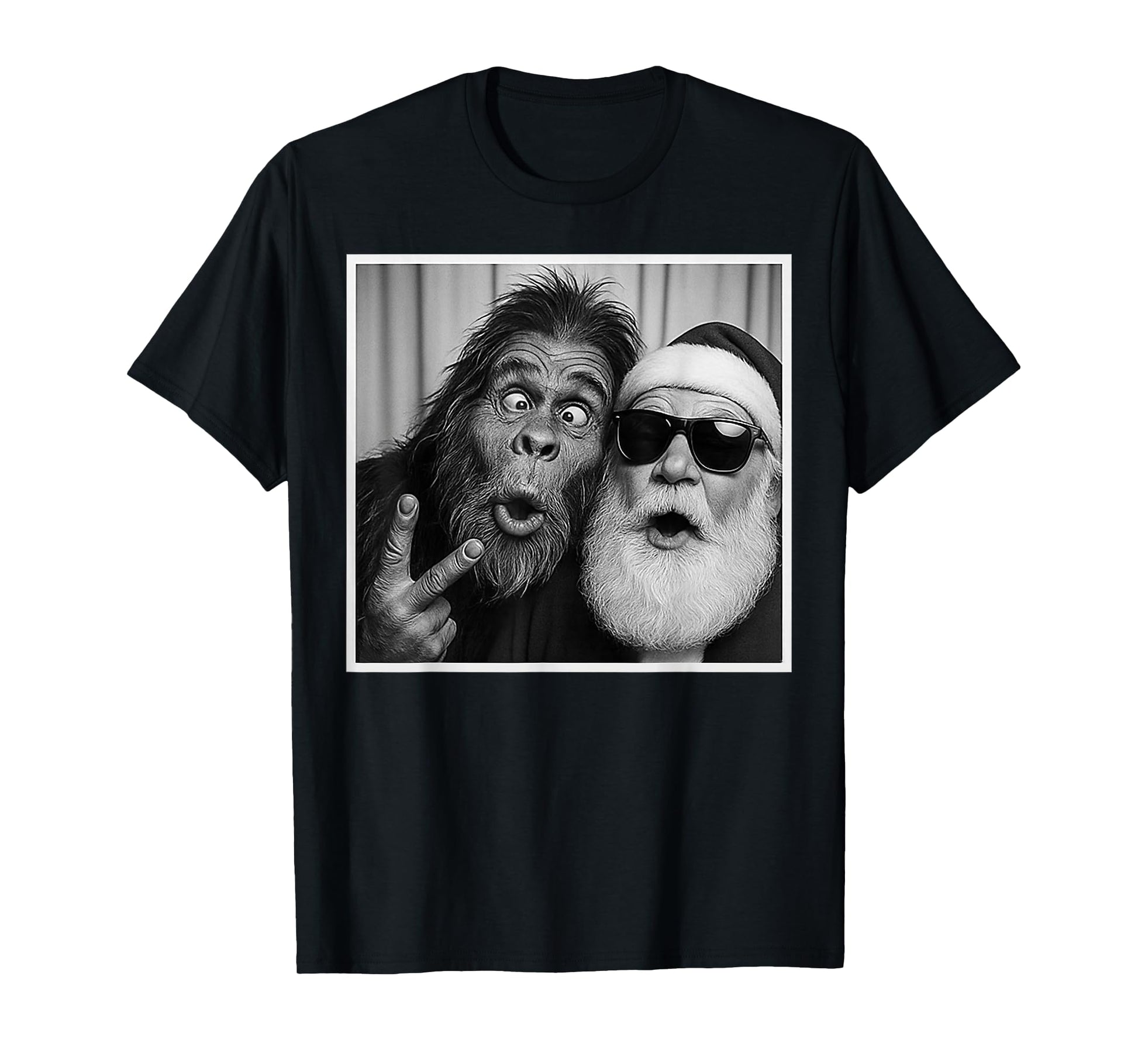 Funny Bigfoot photobooth with Santa Christmas Xmas T-Shirt