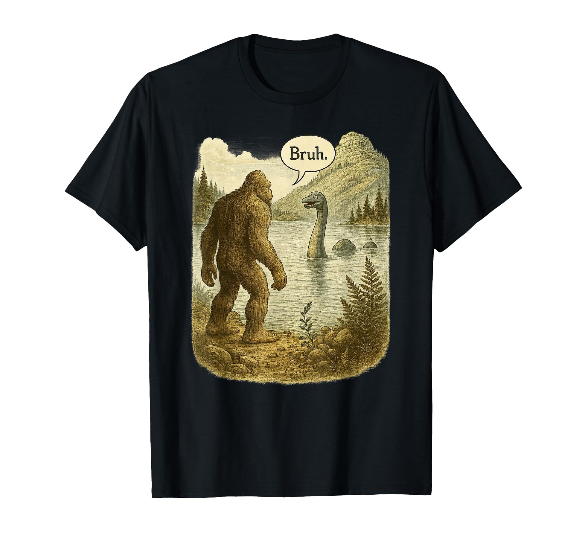 Funny Bigfoot Sasquatch Loch Ness Monster Introvert Bruh T-Shirt