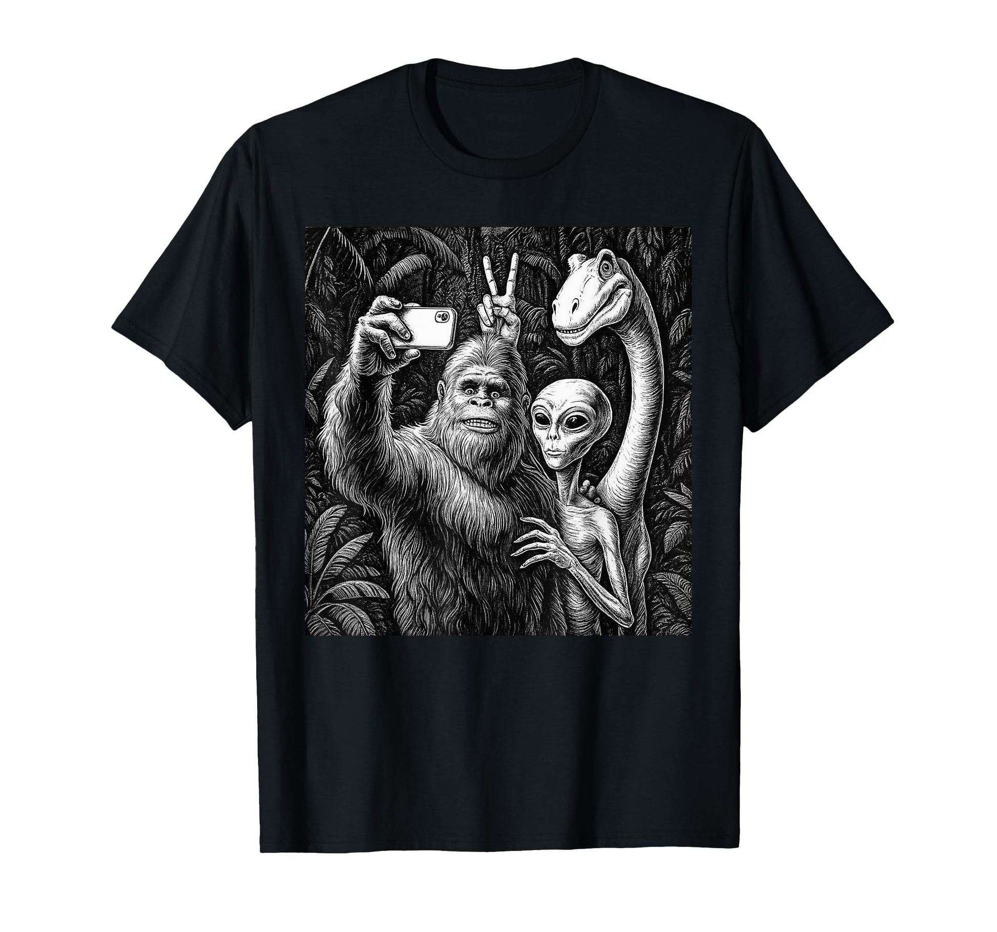 Funny Bigfoot Sasquatch Selfie Alien Loch Ness Humor T-Shirt