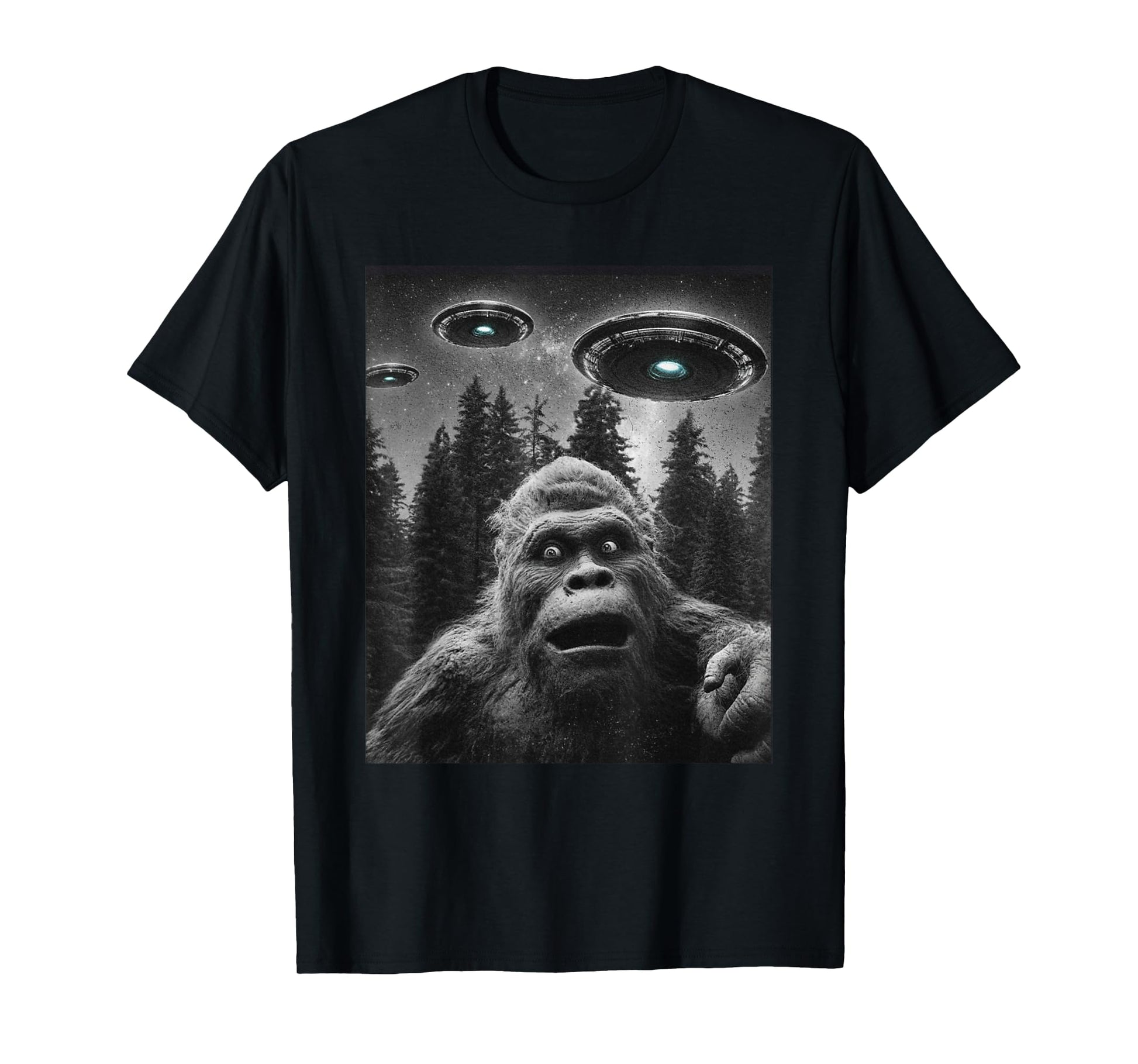 Funny Bigfoot Sasquatch shirt Selfie With Alien UFO For Men T-Shirt