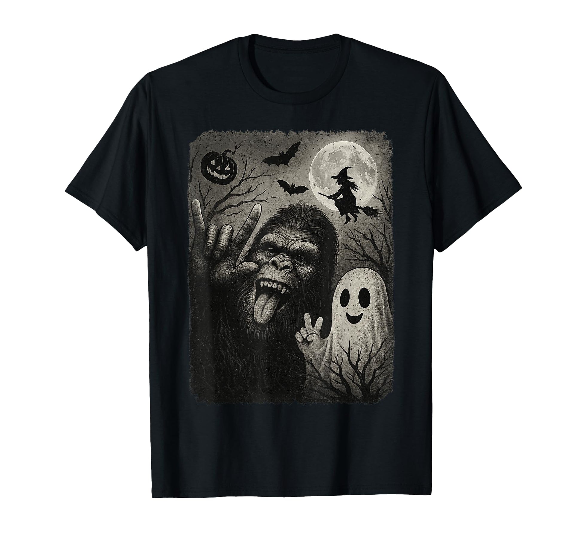 Funny Bigfoot Selfie With Boo Halloween Costume Mens Womens T-Shirt