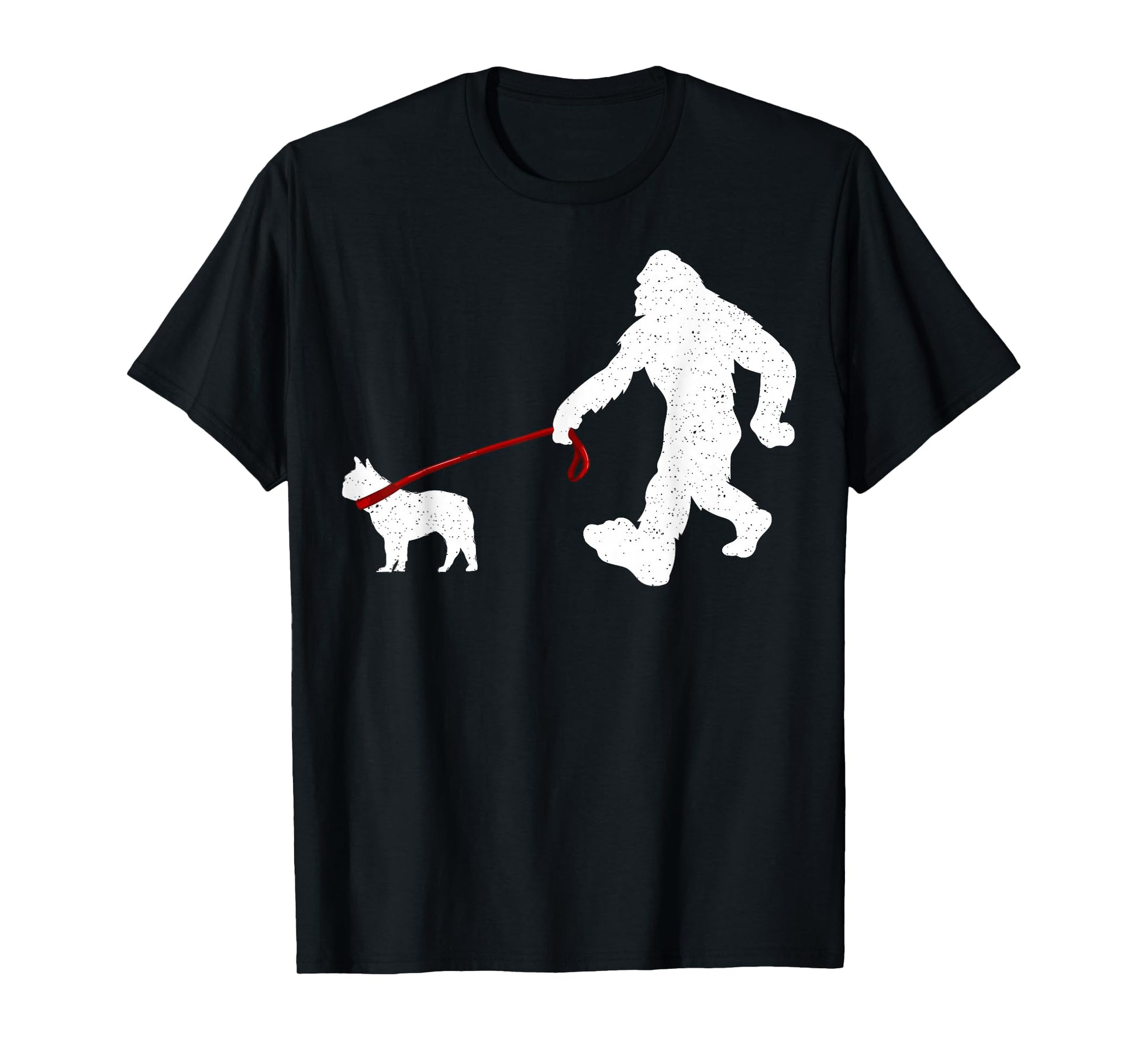 Funny Bigfoot Walking With French Bulldog Dog Lover Bigfoot T-Shirt