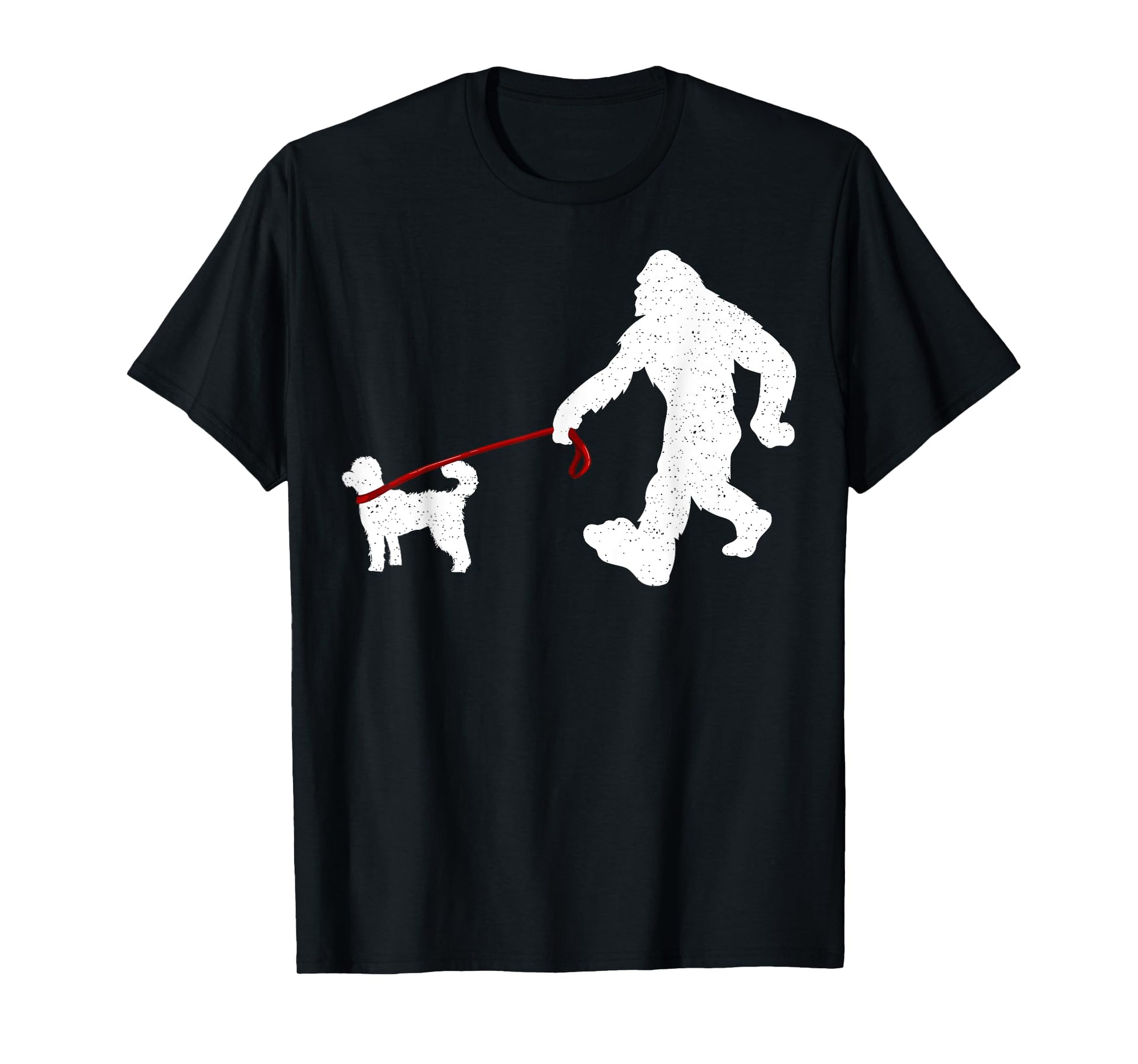 Funny Bigfoot Walking With Poodle Dog Gifts T-Shirt