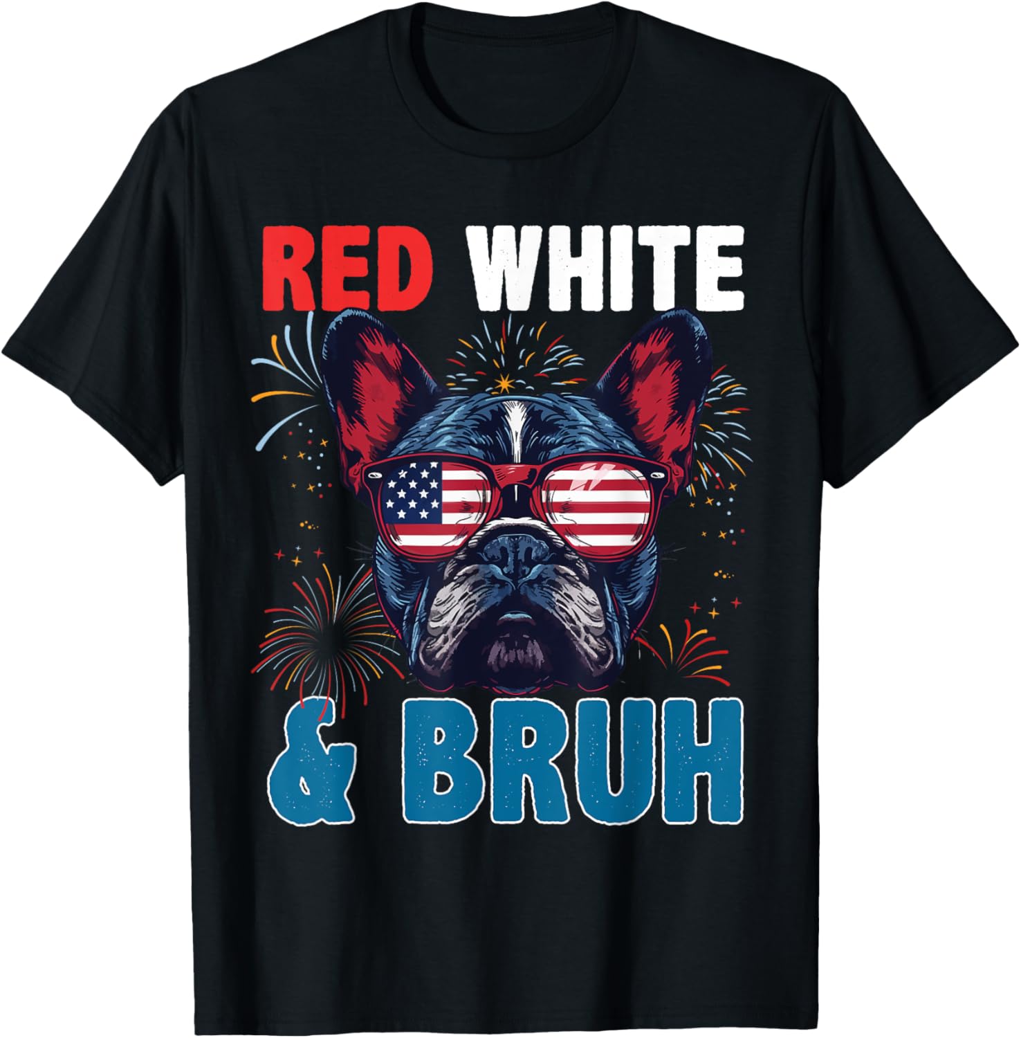 Funny French Bulldog Red White & Bruh America 4th of July T-Shirt