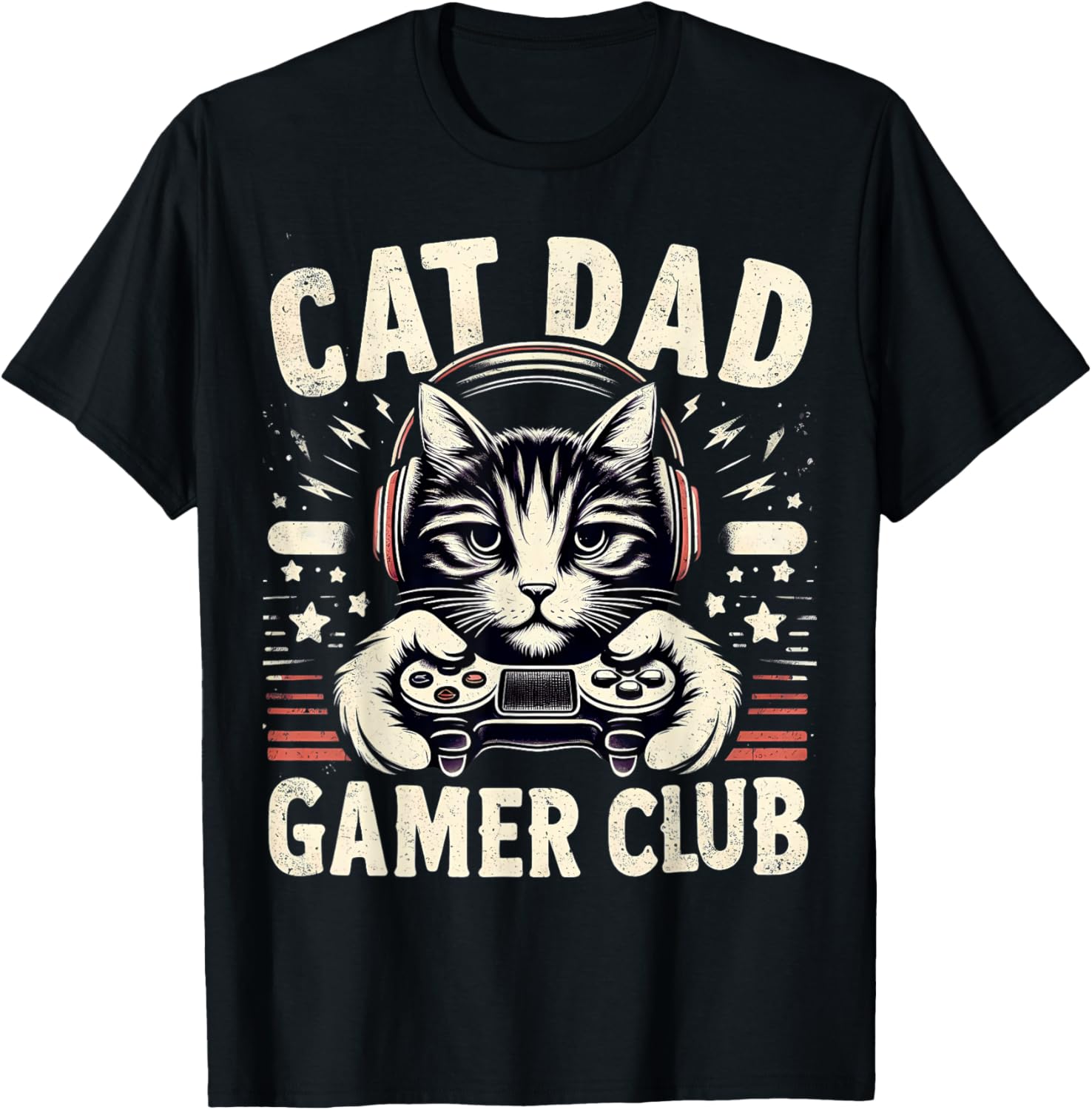 Funny Cat Dad Gamer Club for him Video Game Cat Dad Gaming T-Shirt
