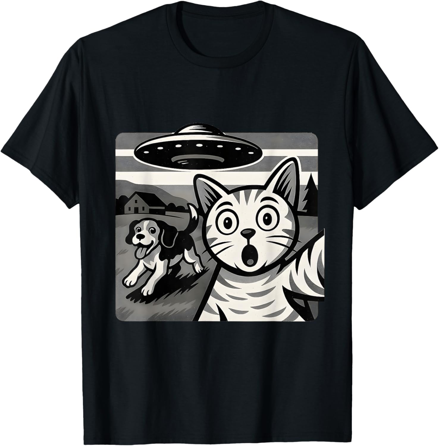 Funny Cat & Dog Selfie With Alien UFO T-Shirt