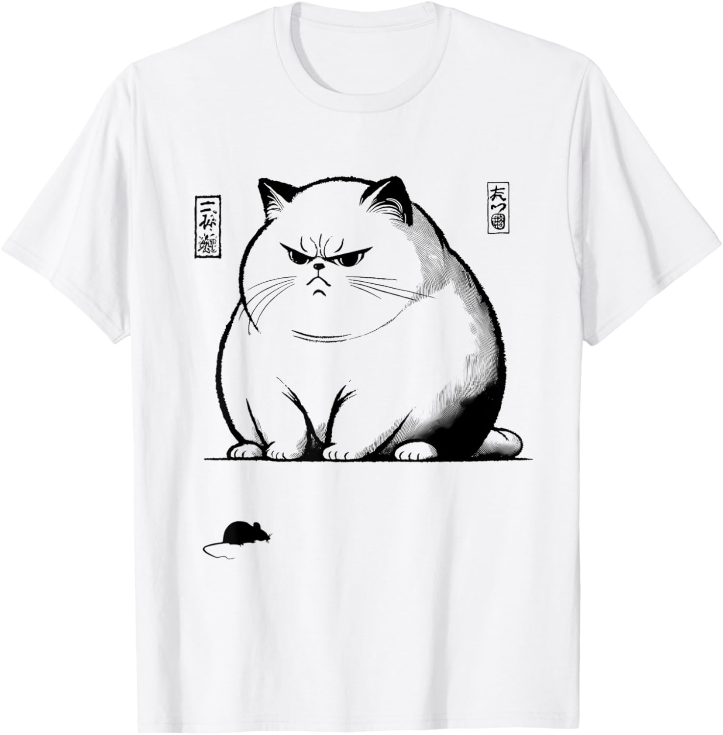 Funny Grumpy Fat Cat Vintage Japanese Art Anime Cat Lovers T-Shirt