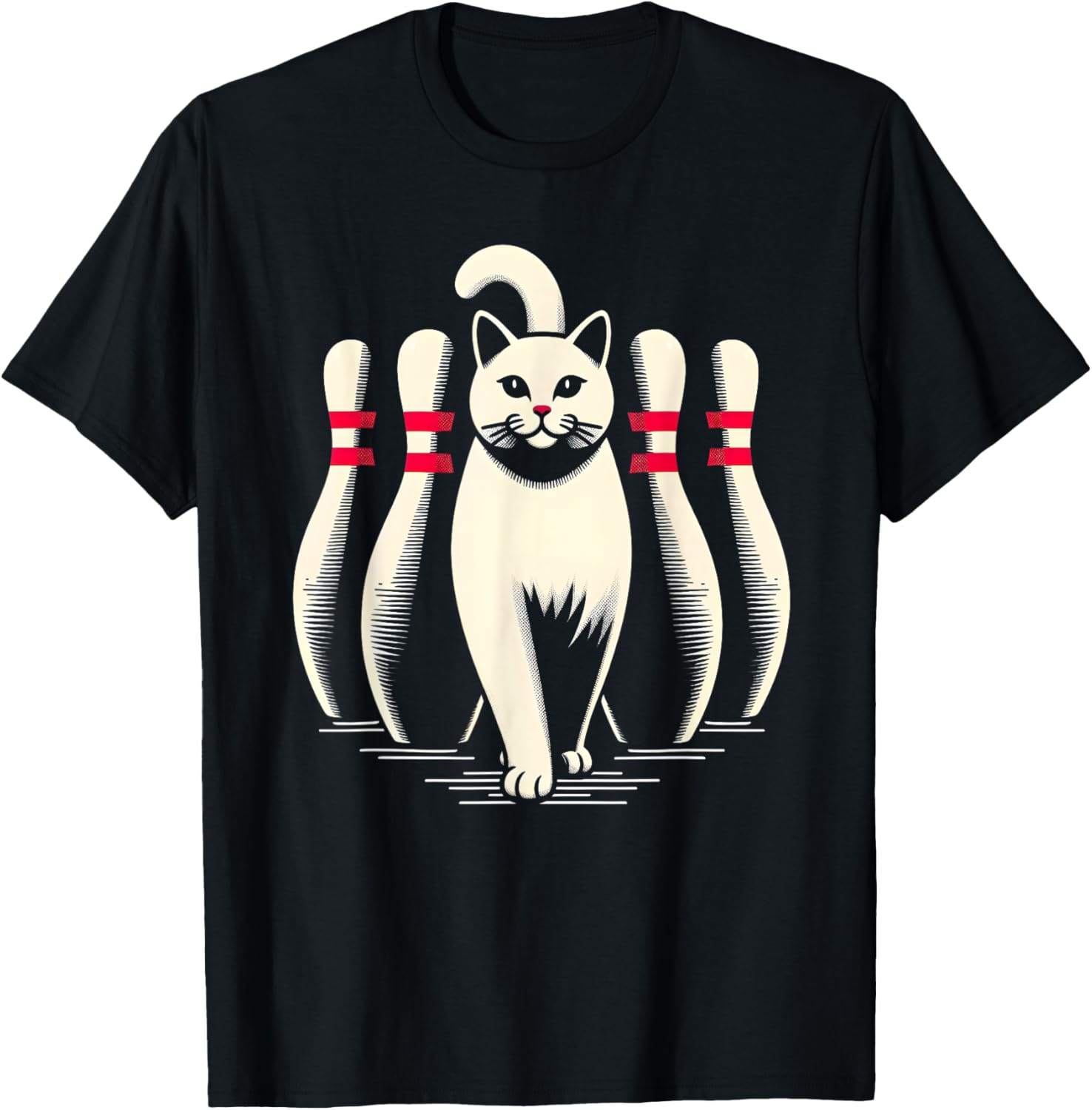 Funny Cat White Playing Bowling Retro Vintage Striking T-Shirt