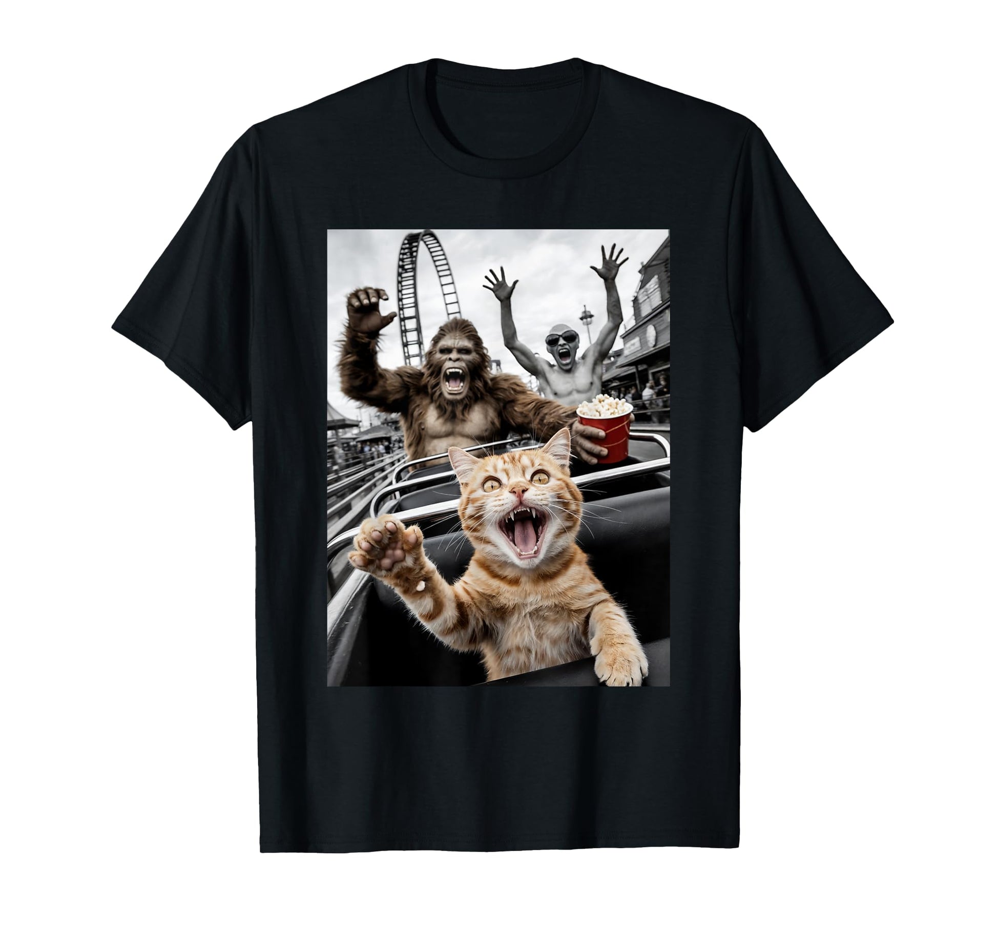 Funny Cat Selfie Bigfoot Alien Roller Coaster Men Women T-Shirt