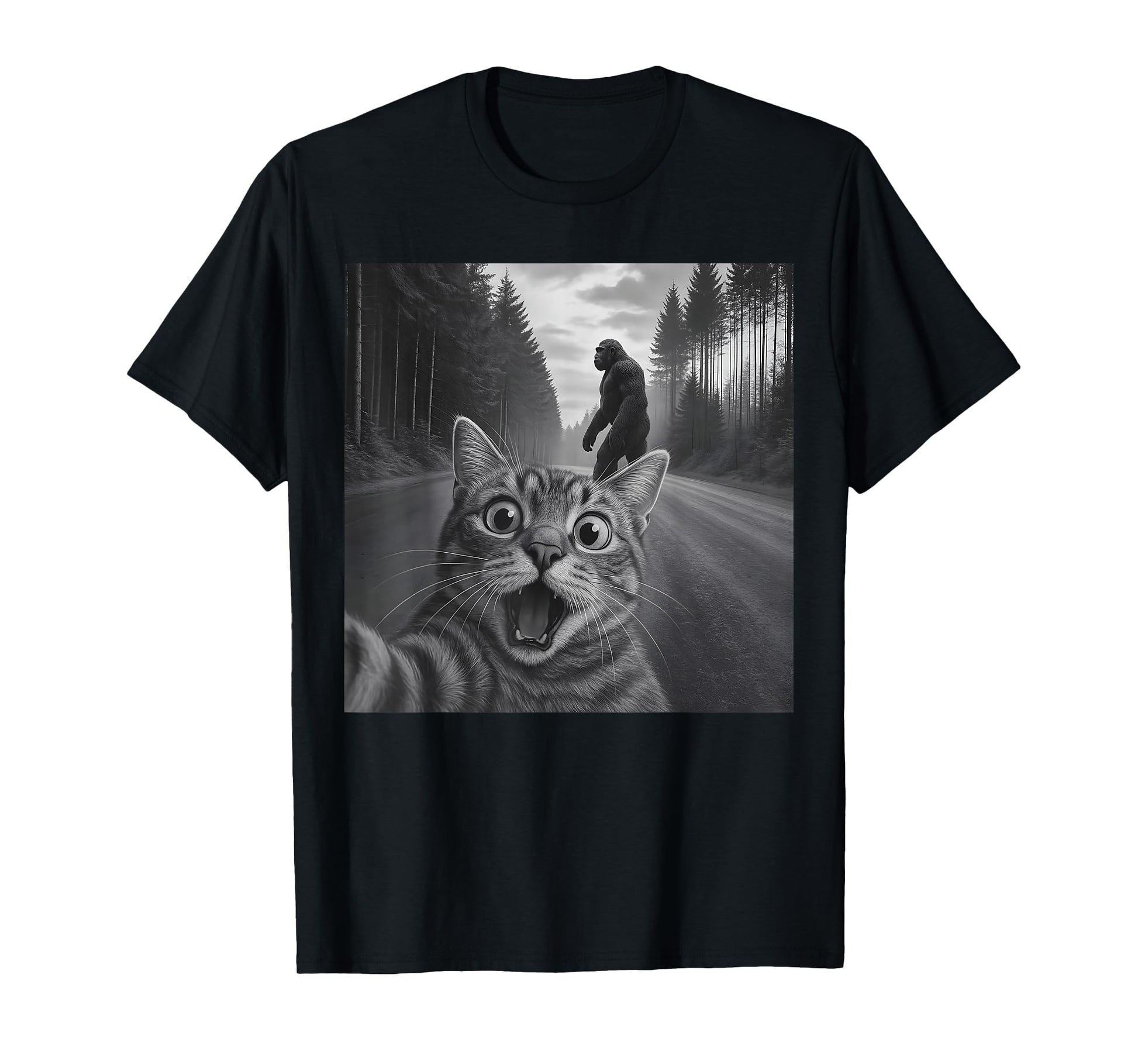Funny Cat Selfie with Bigfoot Cat Lovers Gifts for Men Women T-Shirt