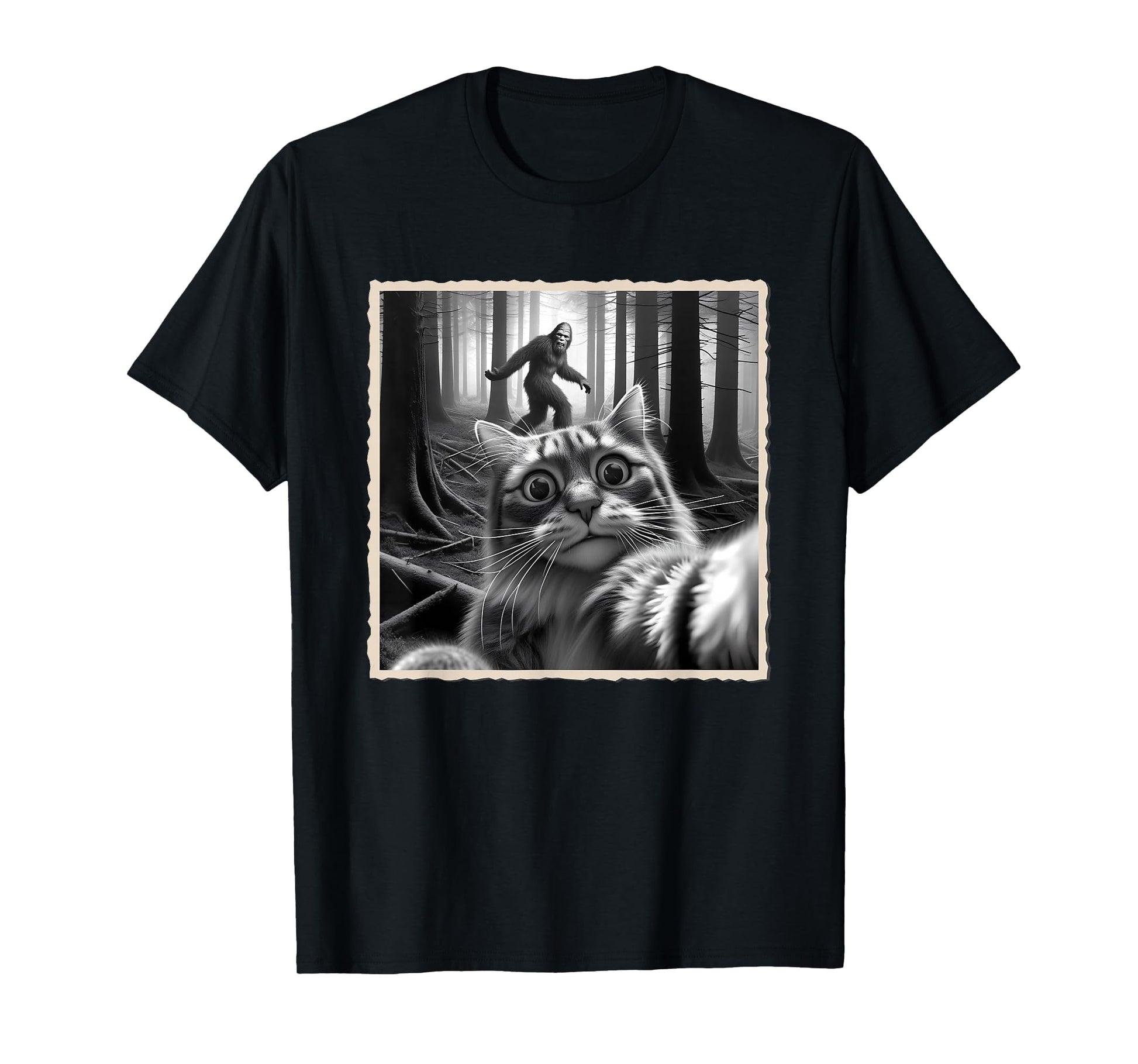 Funny Cat Selfie with Bigfoot, Sasquatch & Humor, Funny Cat T-Shirt
