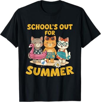 Funny Cats Schools Out For Summer Teacher Last Day Of School T-Shirt
