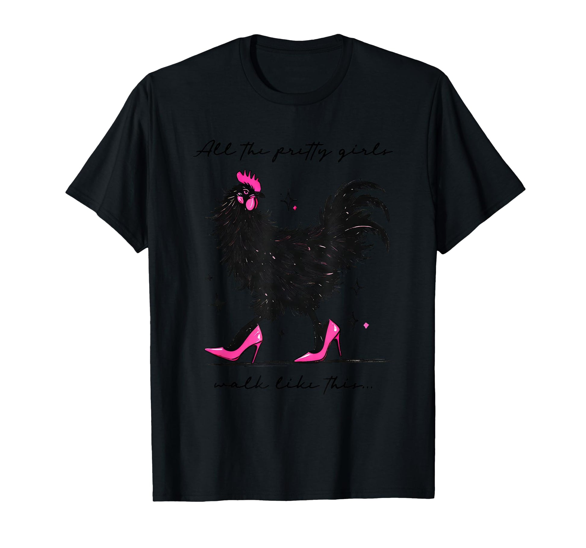 Funny Chicken High Heels All The Pretty Girls Walk Like This T-Shirt