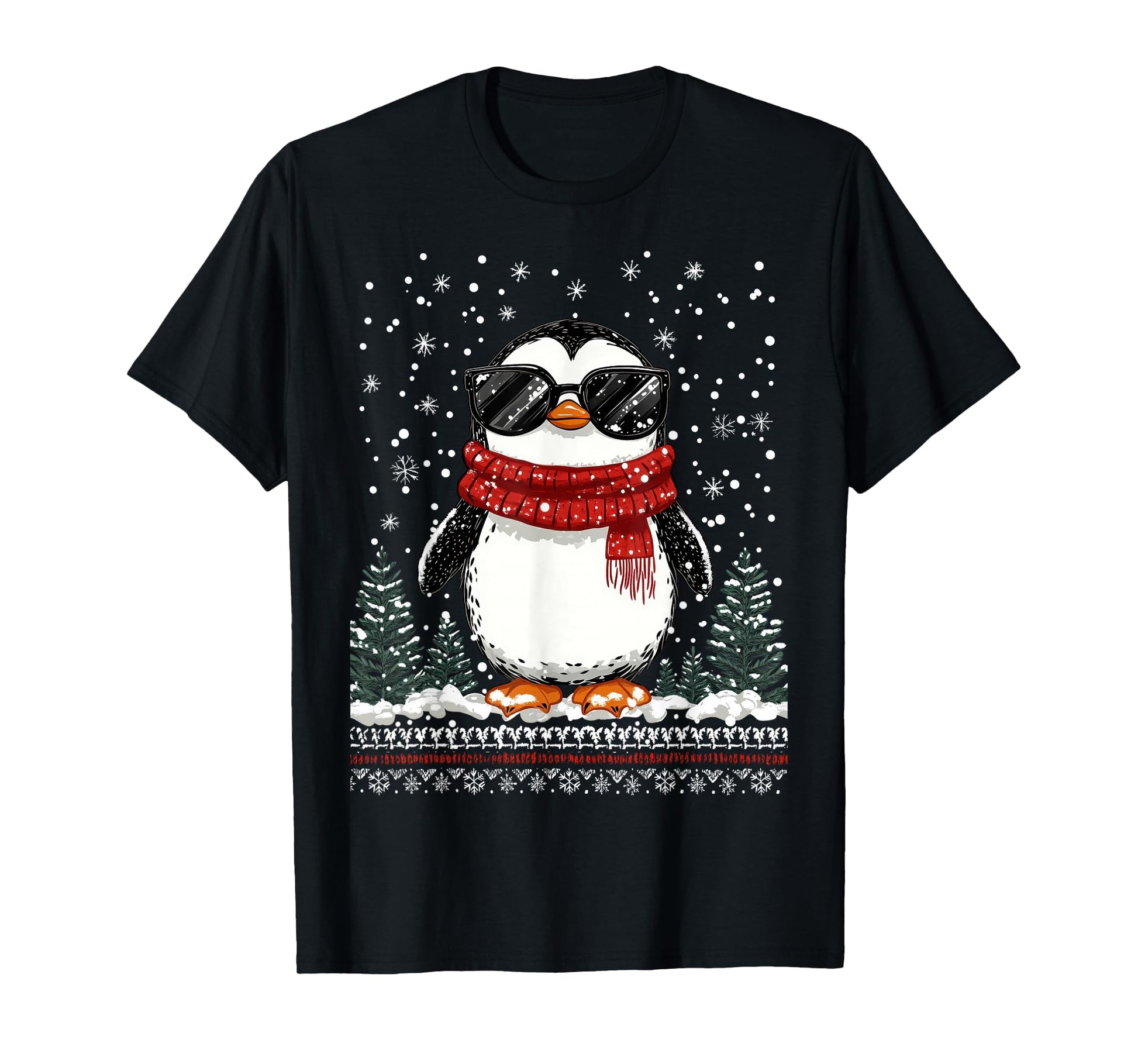 Funny Christmas Penguin With Sunglasses Ugly Christmas T-Shirt
