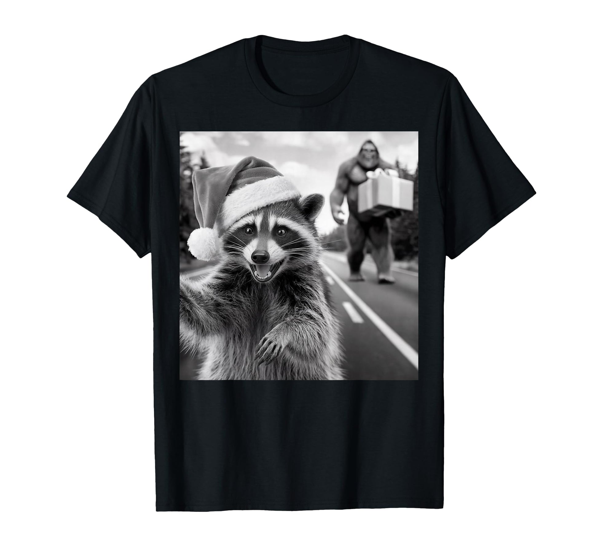 Funny Christmas Raccoon Shirt Raccoon Selfie With Bigfoot T-Shirt