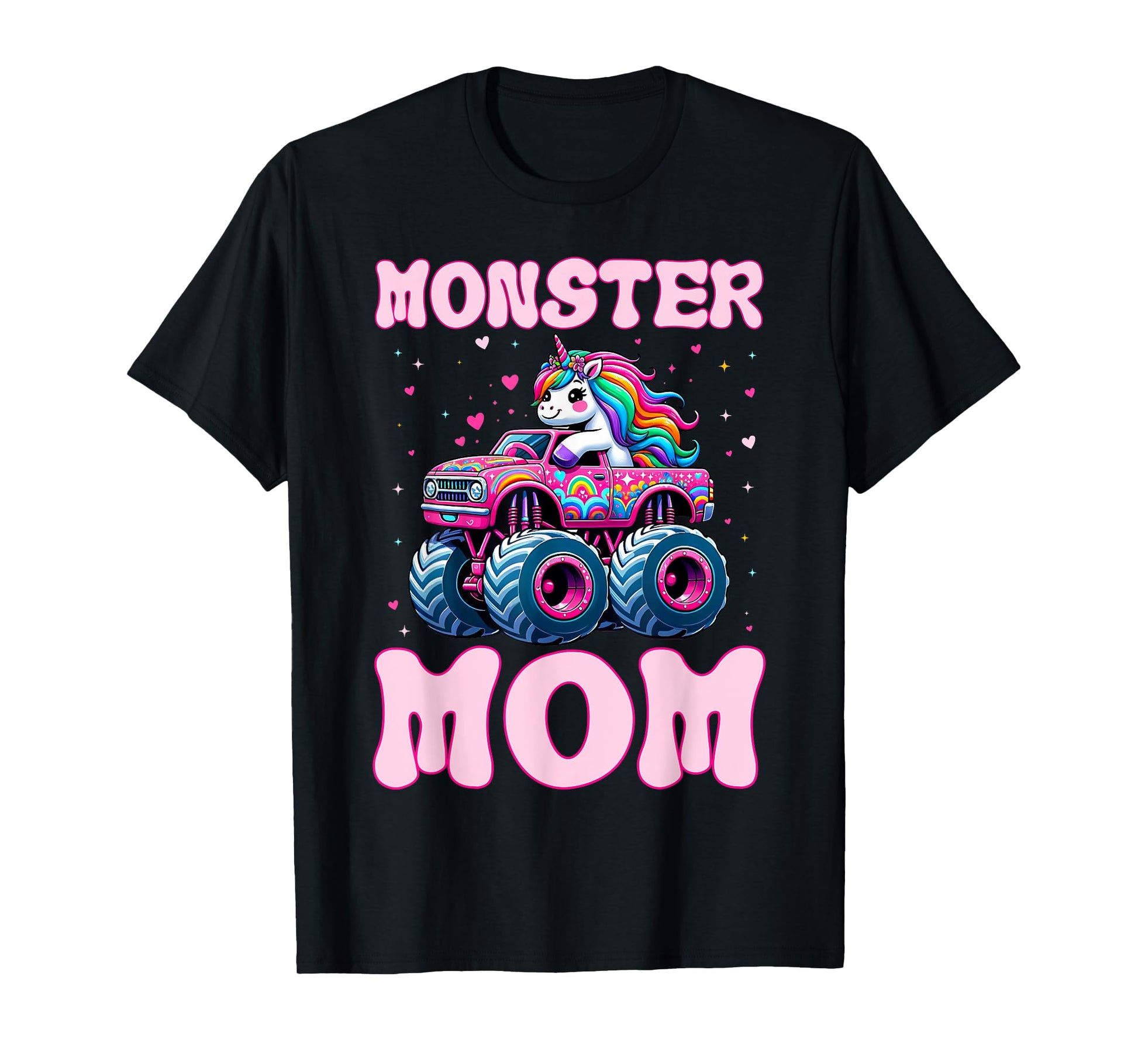 Funny Cute Unicorn Riding A Pink Monster Mom Truck Lovers T-Shirt