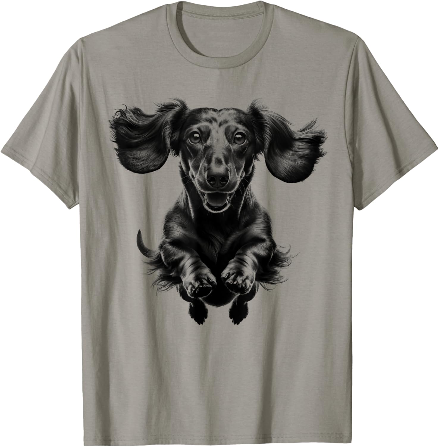 Funny Dachshund in Jump as a Cool Portrait T-Shirt