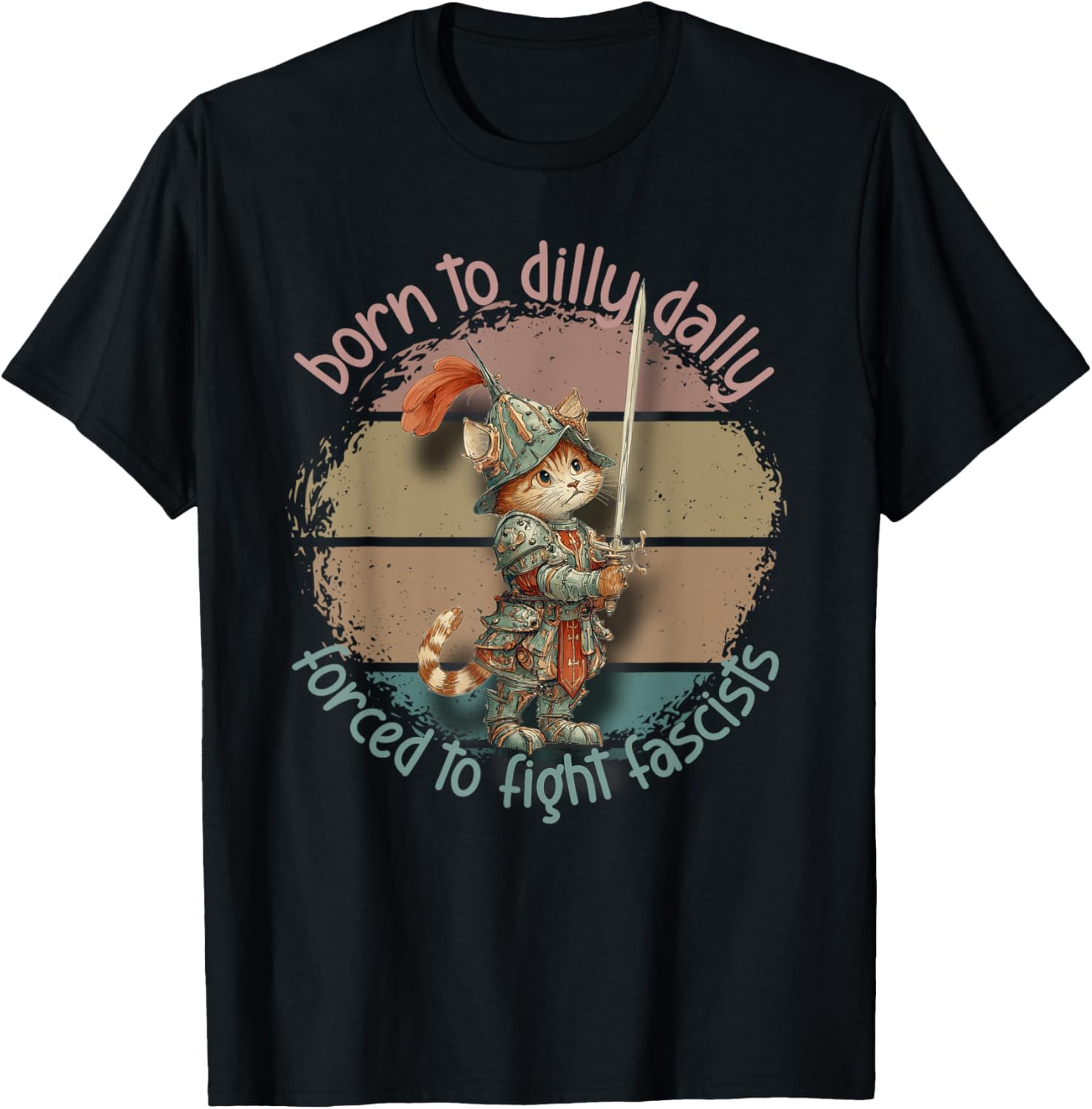 Funny Cat Born To Dilly Dally Forced to Fight Fascists Retro T-Shirt