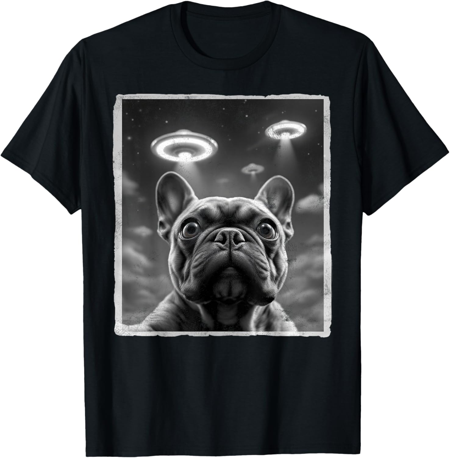 Funny Dog Selfie Puppy Alien French Bulldog & UFO Believer T-Shirt