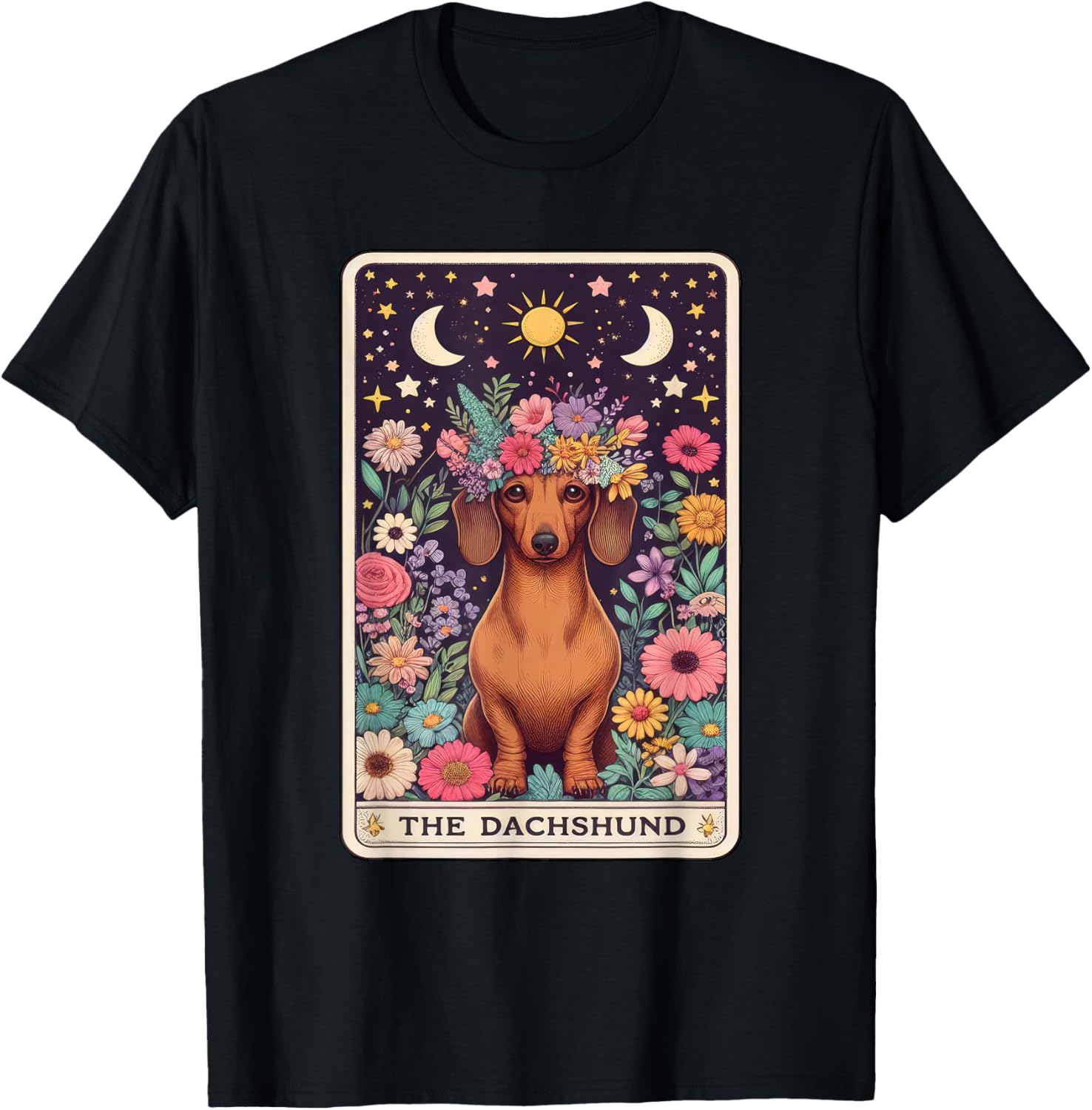 Funny Dog Owner Tarot Card The Dachshund Mystic Occult T-Shirt