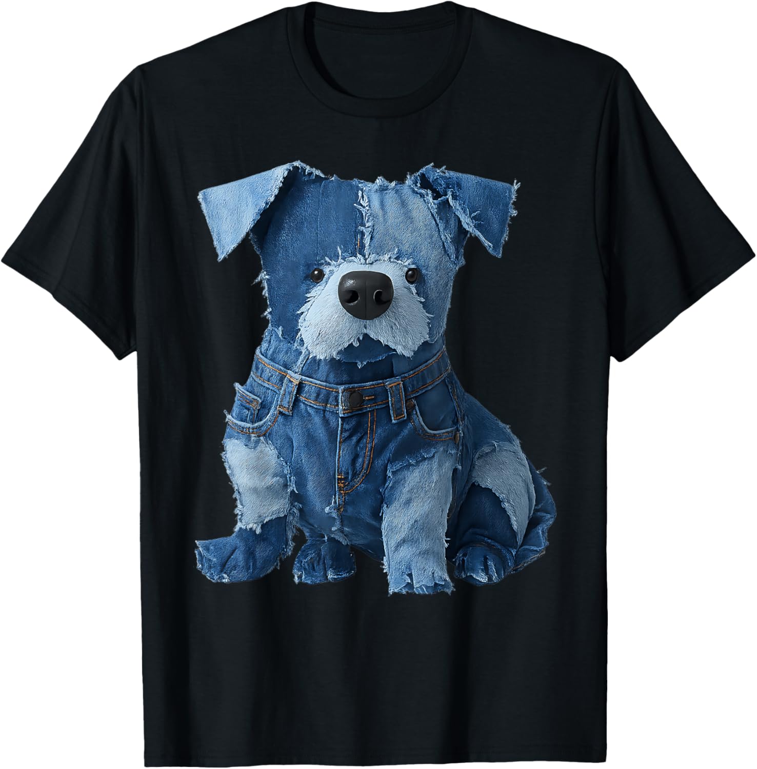 Funny Dogs with Denim Patchwork ART T-Shirt