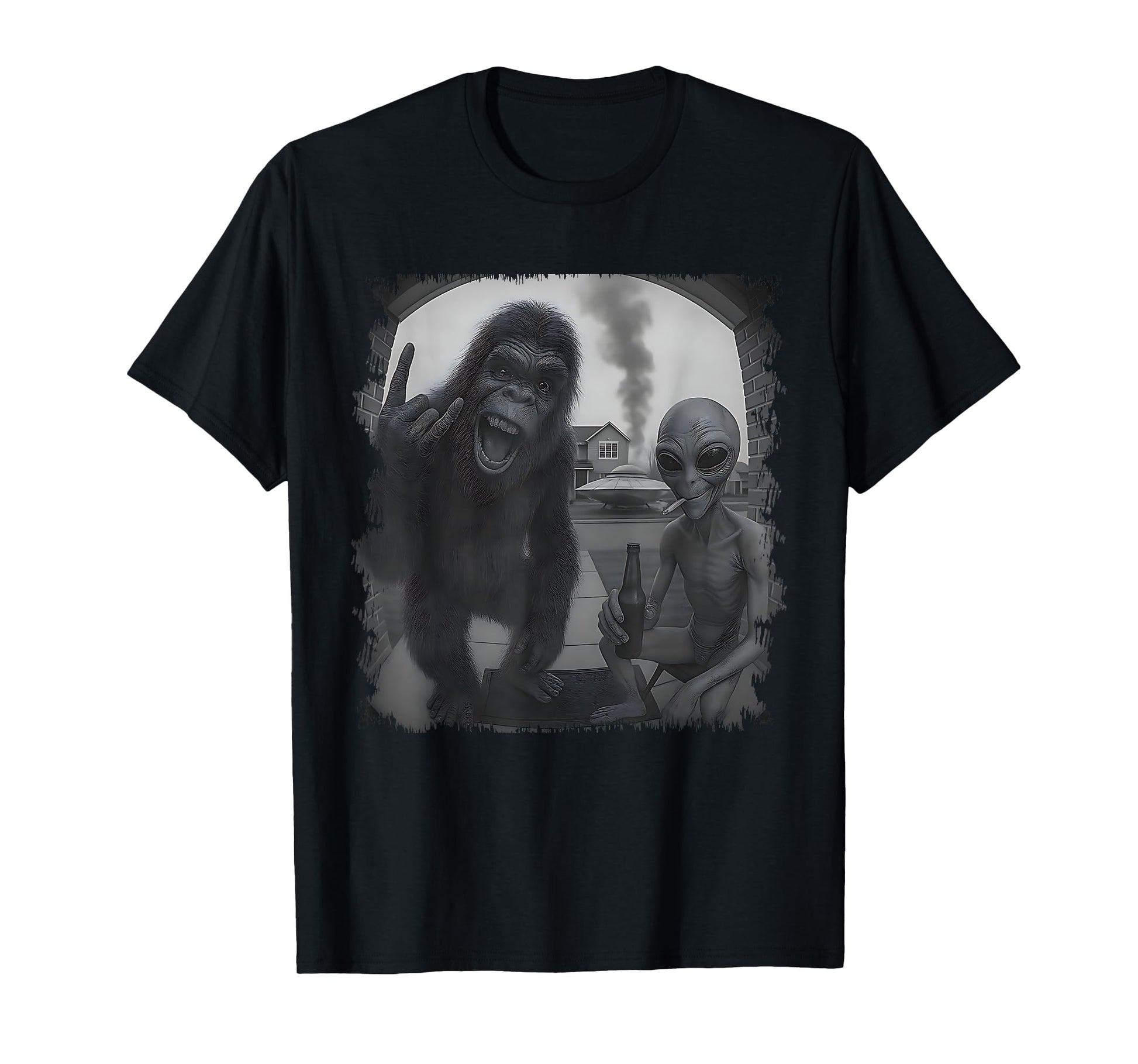 Funny Door Camera Men Women Sasquatch UFO Bigfoot And Alien T-Shirt