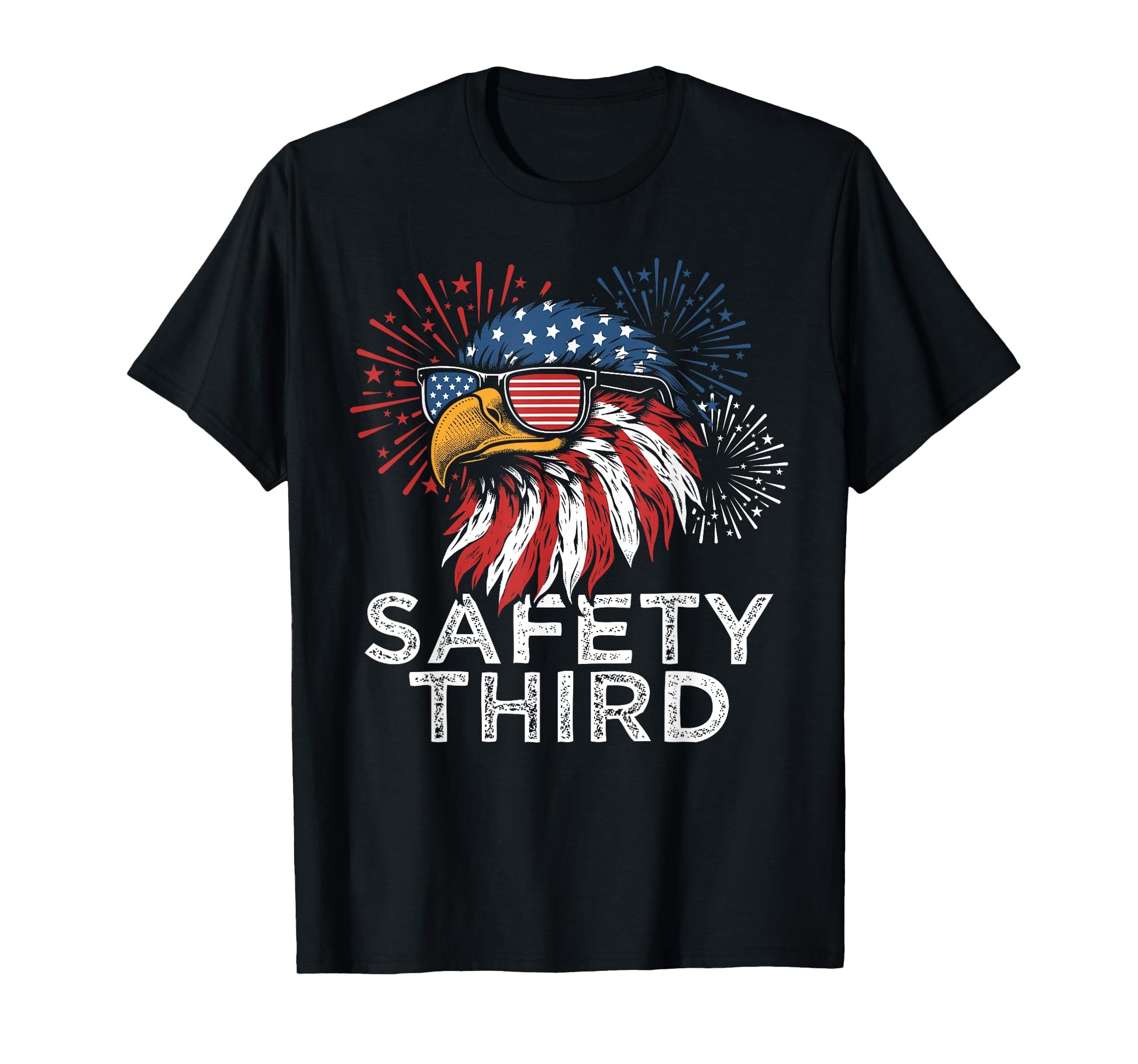 Funny Fireworks Safety Third Eagle American Flag 4th Of July T-Shirt