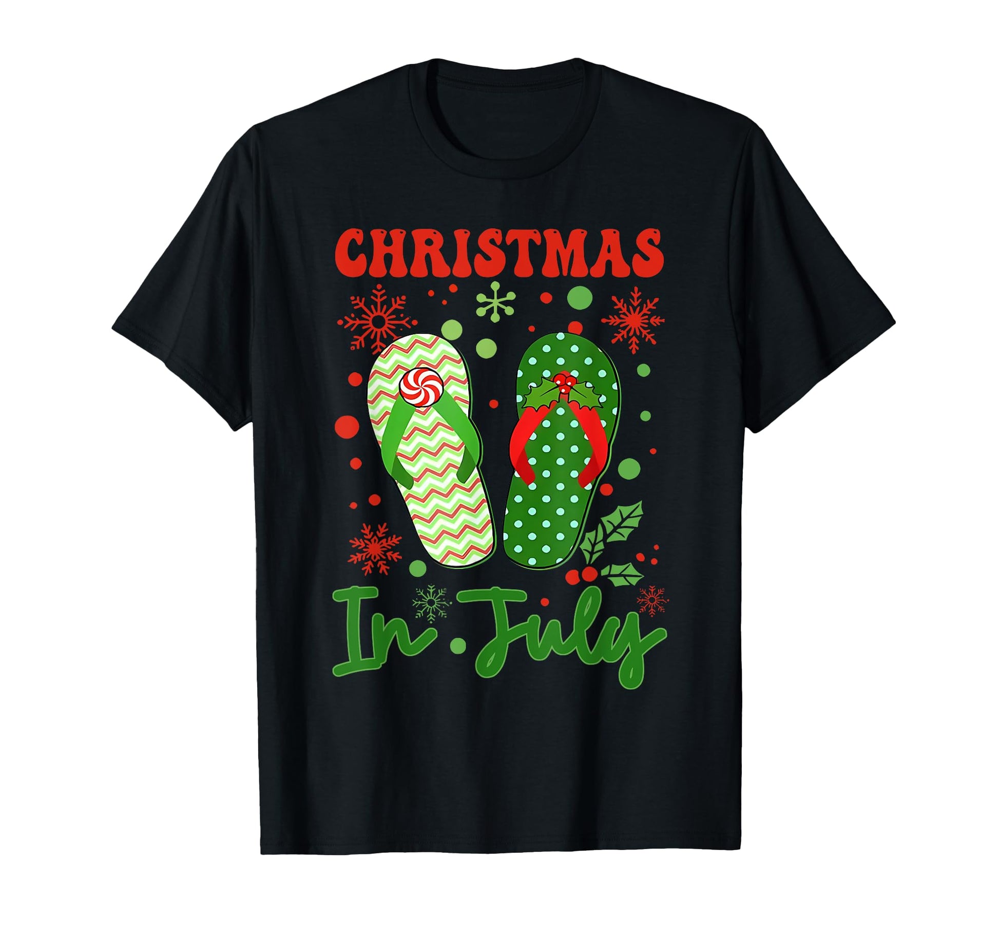 Funny Flip Flops Christmas In July Xmas Beach Vacation T-Shirt
