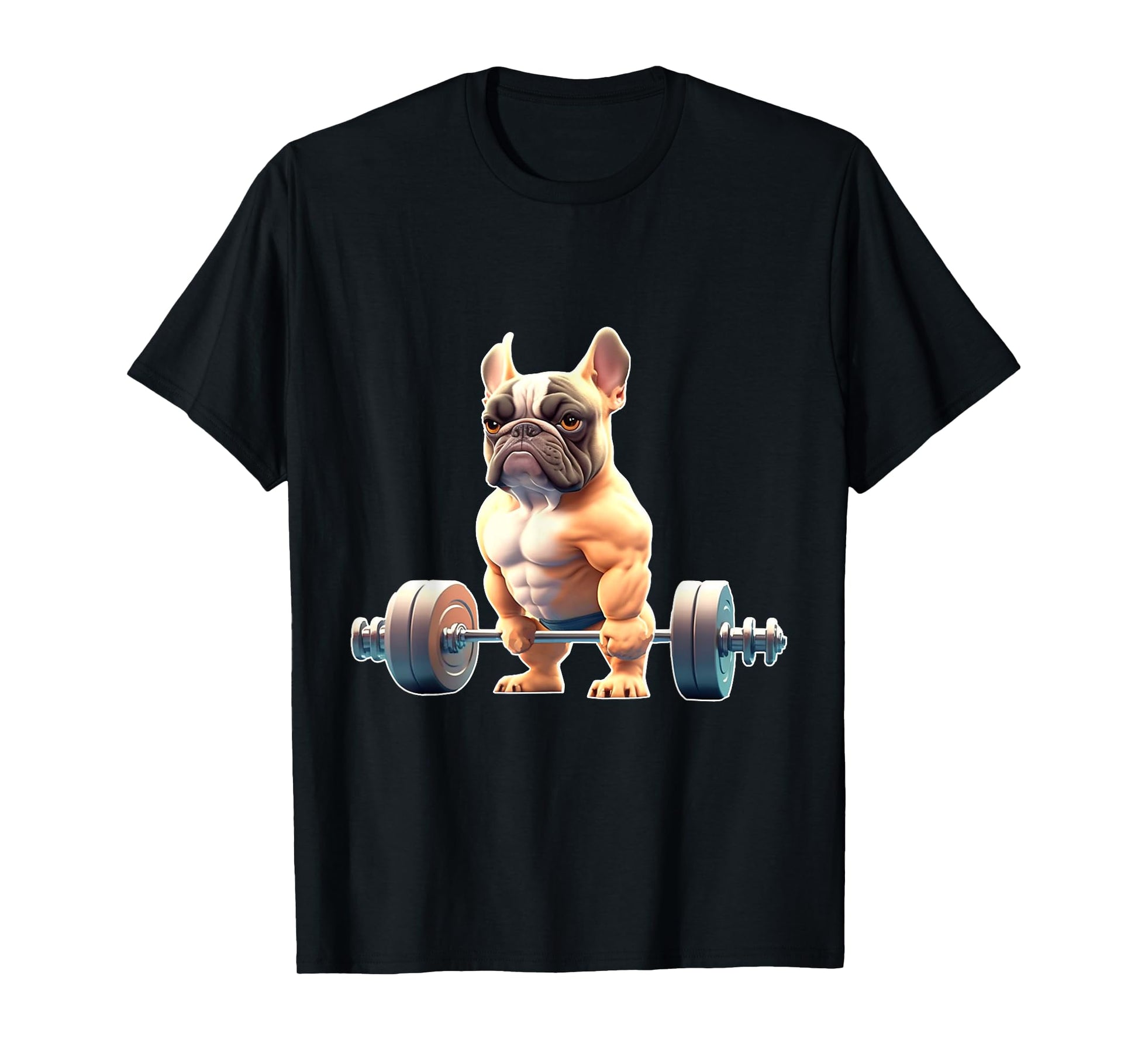 Funny French Bulldog Bodybuilding Gym Frenchie Weightlifter T-Shirt for Men Women Kids