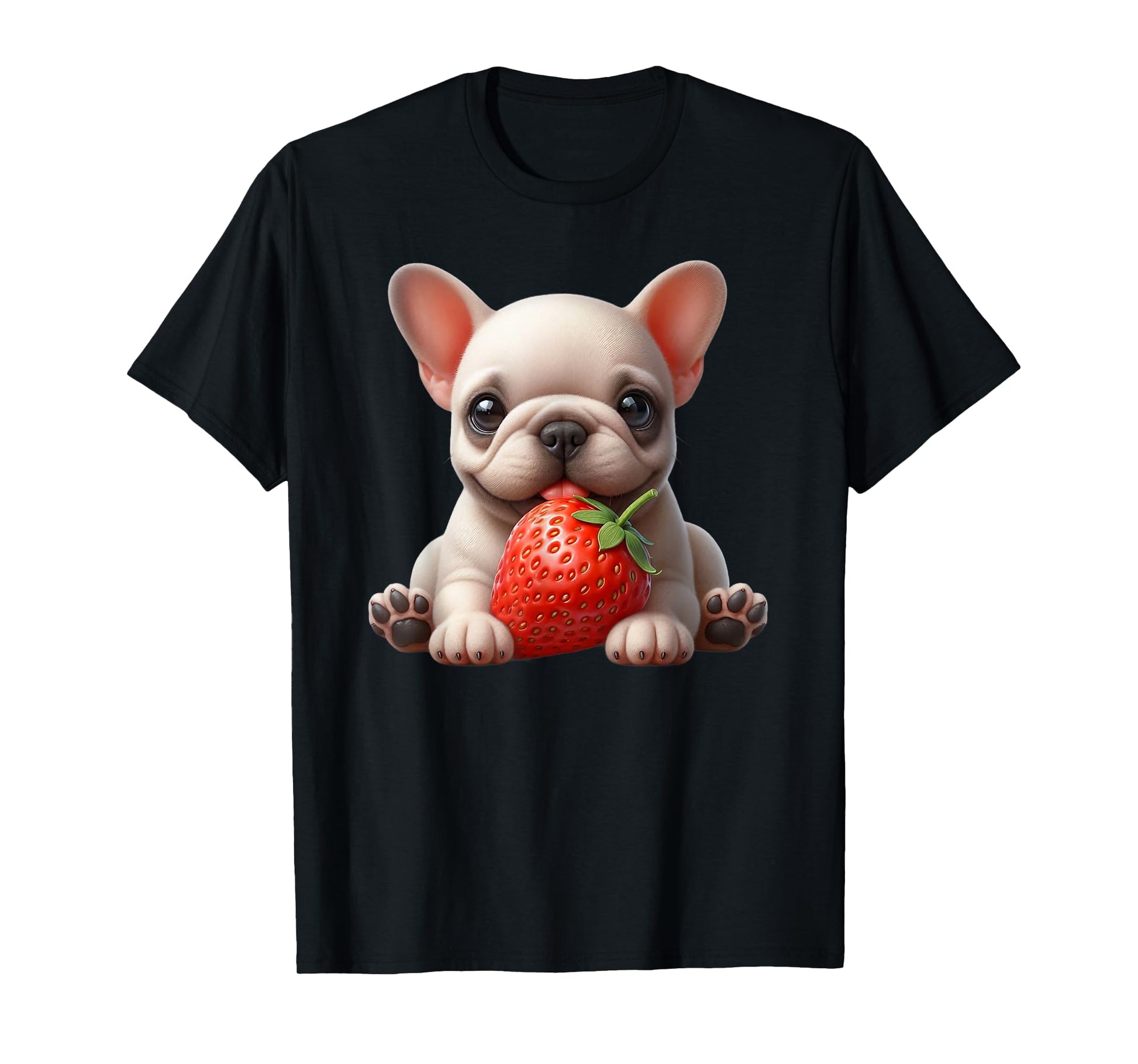 Funny French Bulldog Graphic Cute Dog Eating Strawberry T-Shirt
